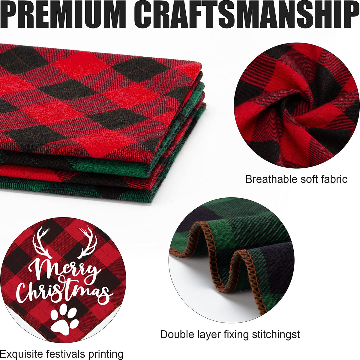 4 Pack Merry Christmas Dog Bandanas - Classic Triangle Fall Xmas Christmas Printing Dogs Red Plaid Scarf Bibs Kerchief Gifts Set - Pet Holiday Accessories Decoration For Small To Large Puppy Dogs Cats