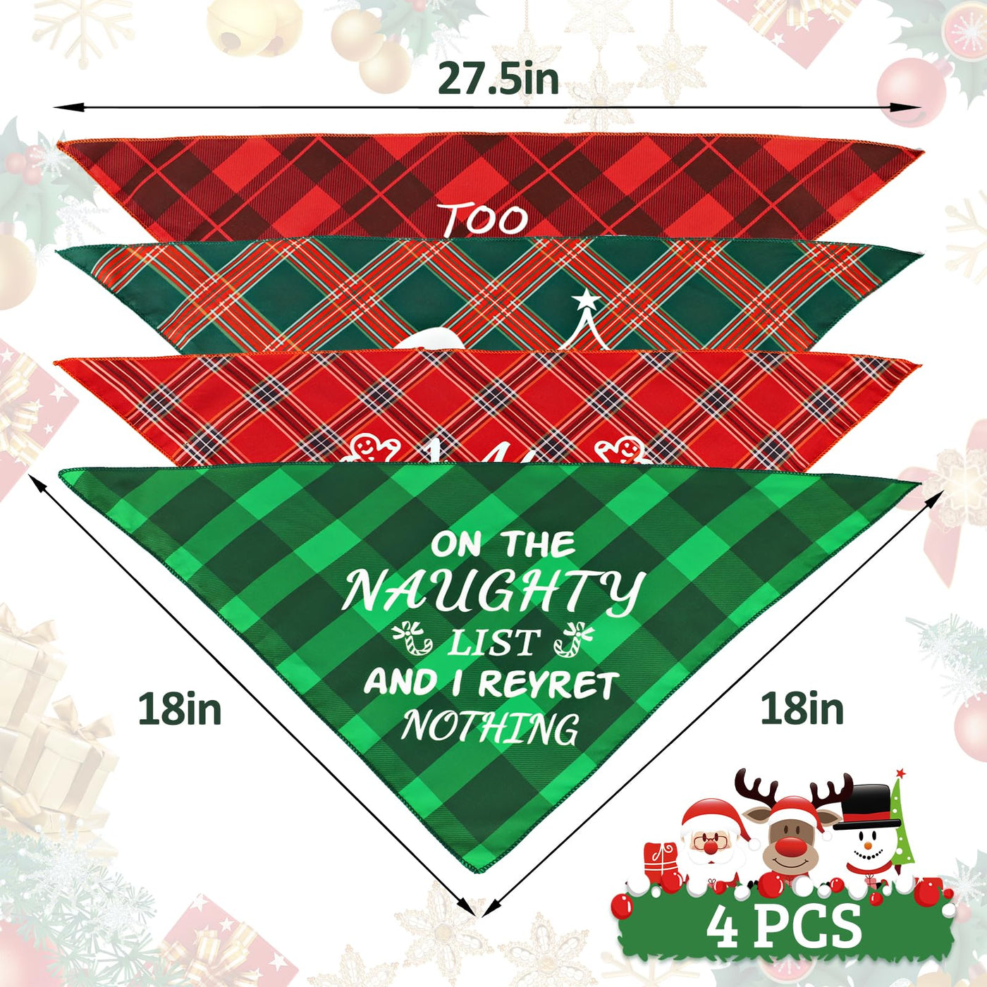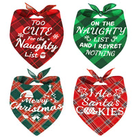 4 Pack Merry Christmas Dog Bandanas - Classic Triangle Plaid Christmas Bandanas For Dogs - Fun Pet Holiday Accessories