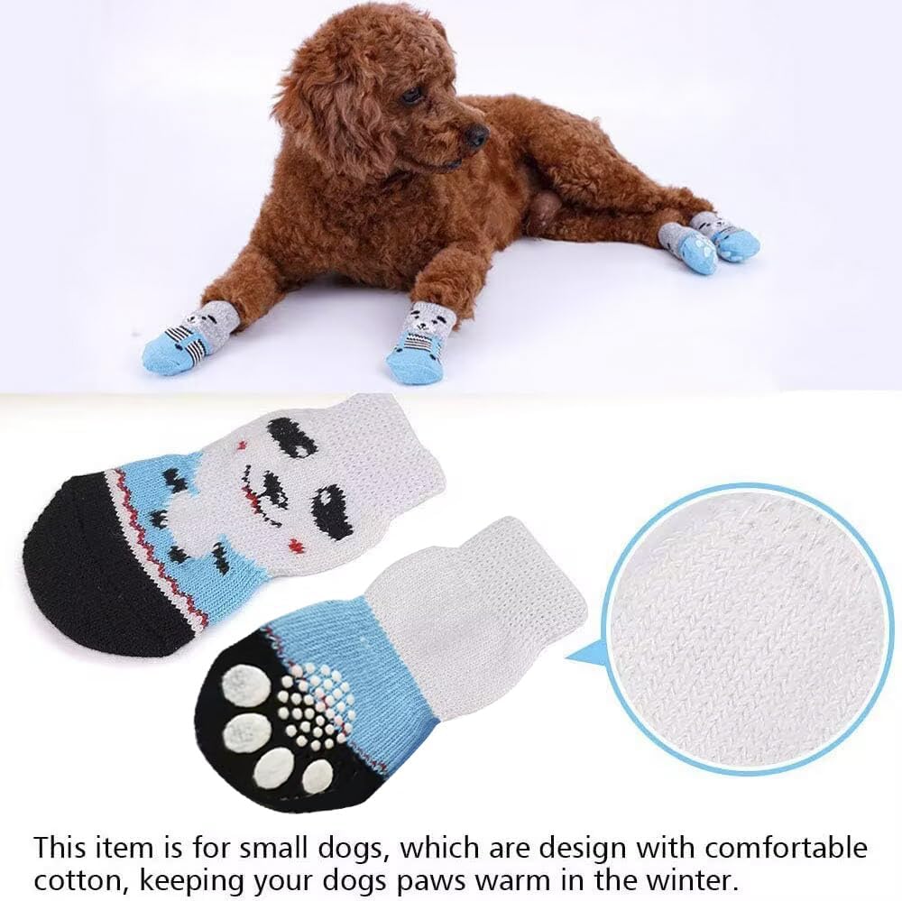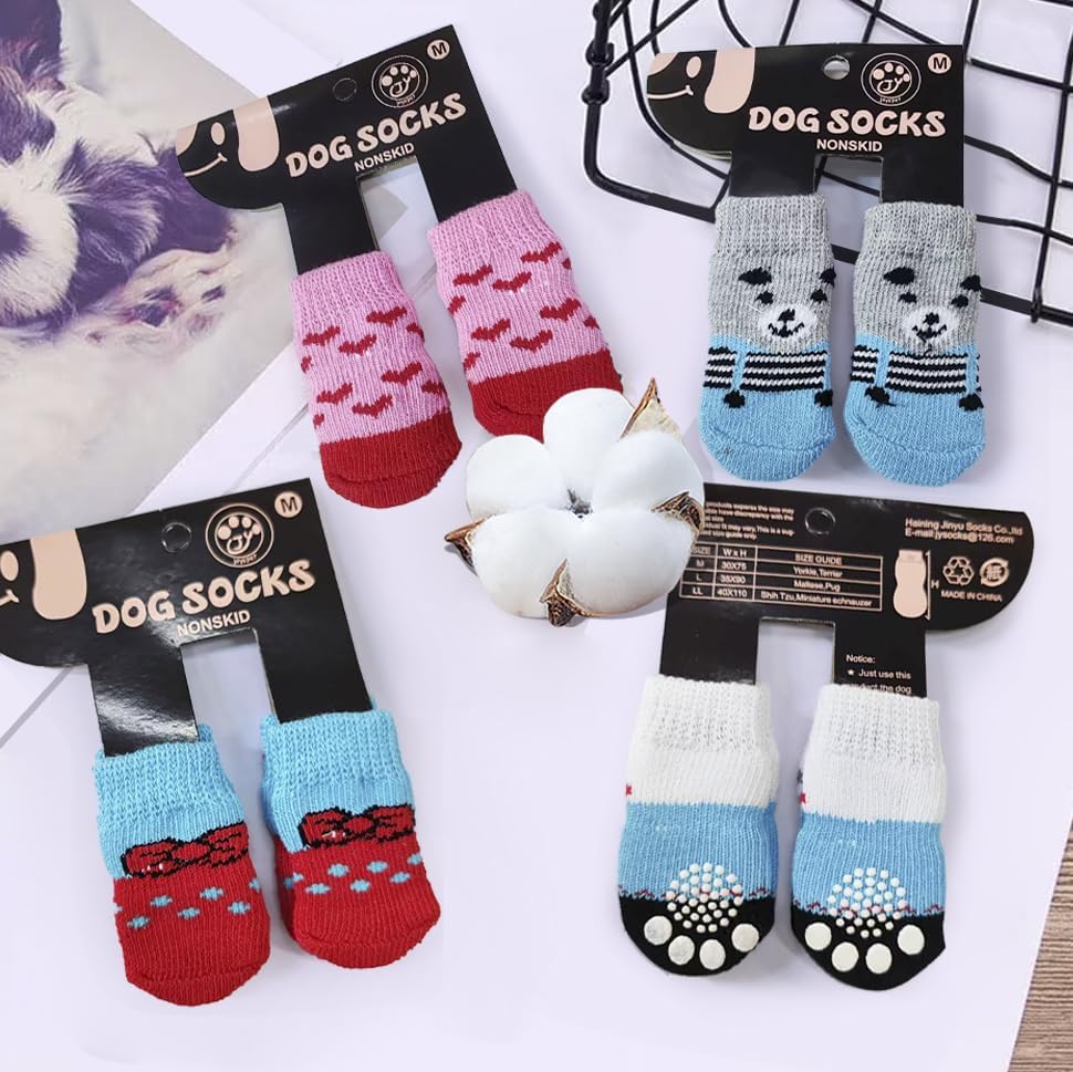 4 Pairs Anti-Slip Dog Socks&Cat Socks With Rubber Reinforcement, Pet Paw Protector For Hardwood Floors Indoor Wear (L)