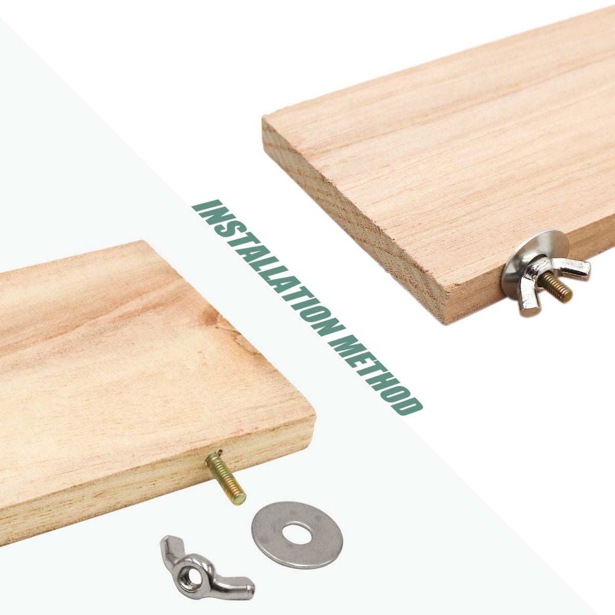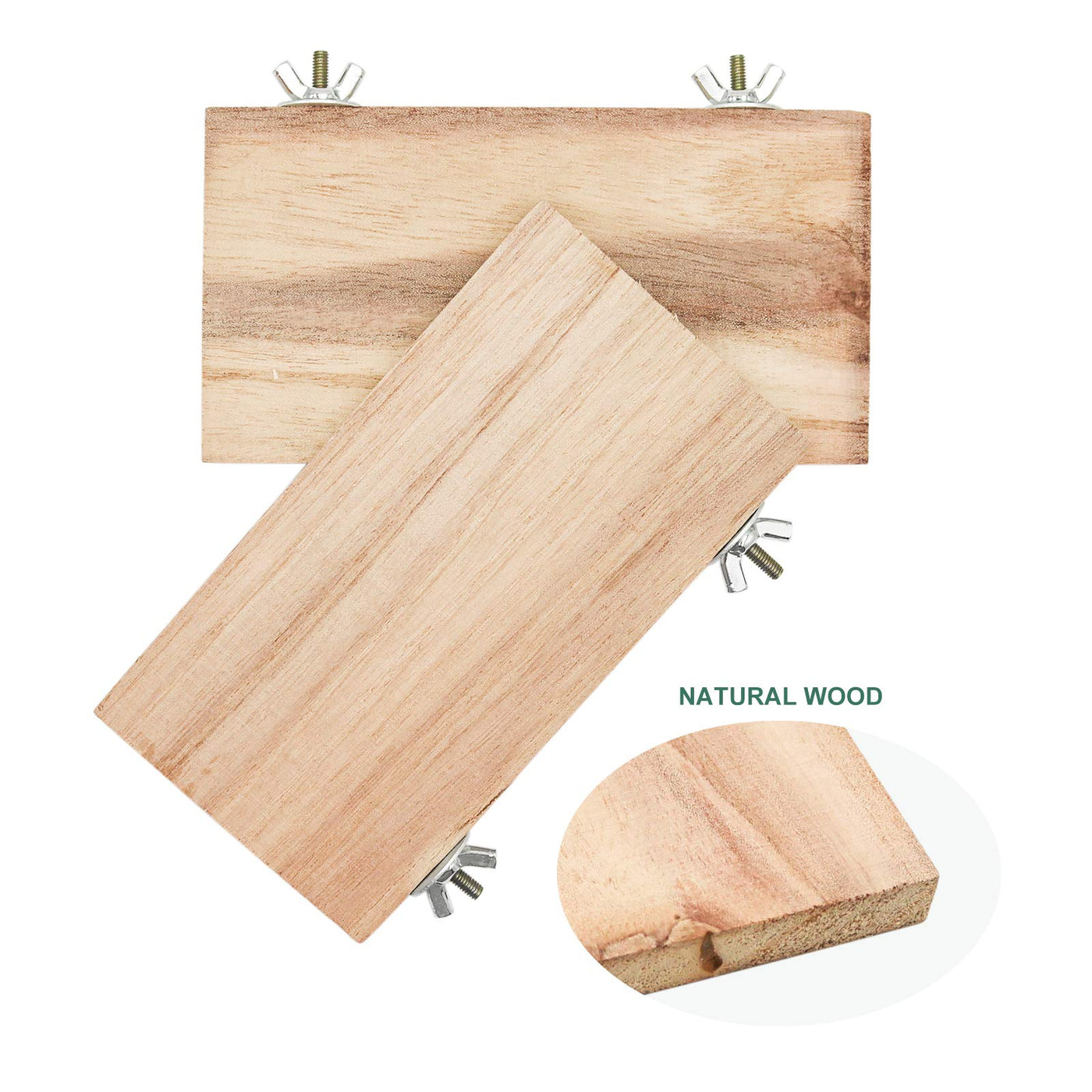 Feature:? Natural Material - Made Of Natural Wood, No Paint, Non-Toxic And Safe For Pets. Provide A Comfortable And Safe Place For Playing And Sports For Your Pet.? Easy To Install - Each Bird Perch Is Equipped With Metal Wing Nuts And Built-In Bolts, No Other Equipment Is Required, It Is Firmly Fixed To The Cage By Built-In Bolts And Wing Nuts, Providing A Safe And Comfortable Place For Pets To Rest And Entertain .? Fun Playground - You Can Space Them Apart With Different Heights To Increase The Fun, So That They Can Jump And Enjoy The Fun Of Running.? Suitable For - Not Only Suitable For All Kinds Of Birds(Parrots, Parakeets, Cockatiels, Lovebirds), But Also For Rat,Chinchillas, Gerbils, Hamsters, Chinchillasspecificationmaterial:Natural Woodsize:Bird Wood Platform 5.9*3.2 Inch (Long*Width), Bird Perch Length Is 5.5 Inch(Total Length 6.1 Inch)Package Include:2 Pieces Bird Natural Wood Stand2 Pieces Bird Perchnote1. The Trees Grow Naturally, And Vary In Shape, There Is No Way To Ensure That They Are Consistent With The Shape Of The Picture.2. Due To Manual Measurement And Different Measurement Methods, Please Allow A Deviation Of 0.3-0.5 Inch.3. In Order To Keep Your Birds In A Healthy And Hygienic Environment, Please Clean The Toys Regularly (Every 2-3 Weeks). First Remove The Perch From The Cage, Then Rinse It With Clean Water, And Finally Dry It In The Sun Before Moving It To The Cage.