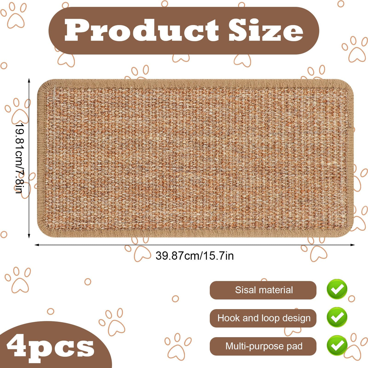Adhesive Loop Tape: Can Be Sticked On Multiple Areas And Help You Create Better Scratching Options. Peel Off The White Sticky Labels Only.. Thoughtful Gift: Satisfy The Cat'S Scratching Nature And Have Fun Grinding Claws. It Also Helps To Protect The Furniture From Being Damaged. Specifications: Material: Sisal Color: Brown Size: About 15.7 X 7.8 Inches Package Includes: 4 X Cat Scratcher Notes: Manual Measurement, Please Allow Slight Errors On Size. The Color May Exist A Slight Difference Due To Different Screen Displays.