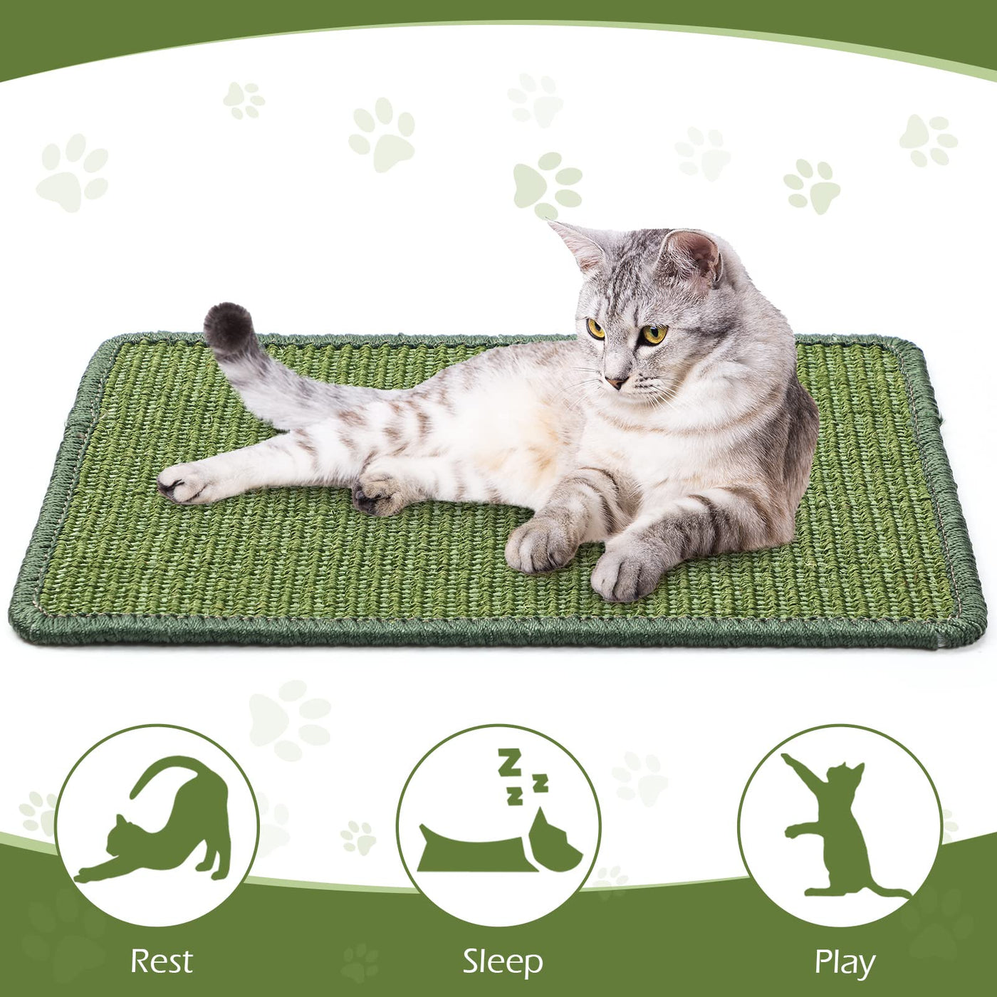 Q: How can the cat scratcher mats protect my furniture?A: By providing a designated scratching surface, these mats help prevent your cat from scratching furniture and carpets, effectively protecting your belongings while promoting healthy claw maintenance.