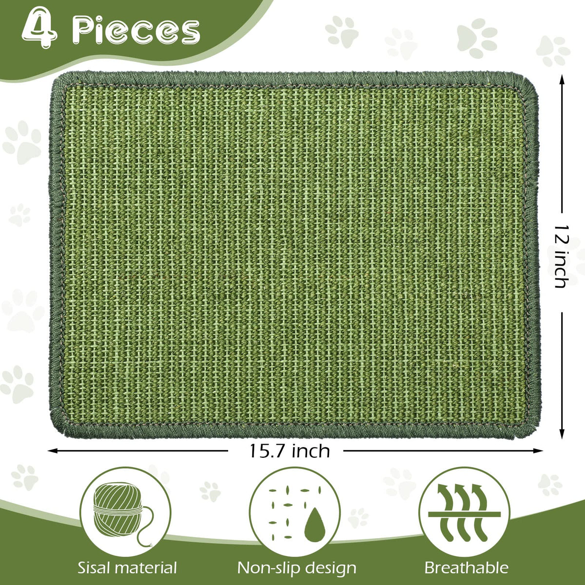 4 Pcs Cat Scratcher Mat Sisal Cats Scratch Mats Horizontal Cat Floor Scratching Pad Rug Sisal Fabric Cat Scratch Mat For Protecting Carpets Sofas And Cat Grinding Claws Green 11.8' X 15.7'