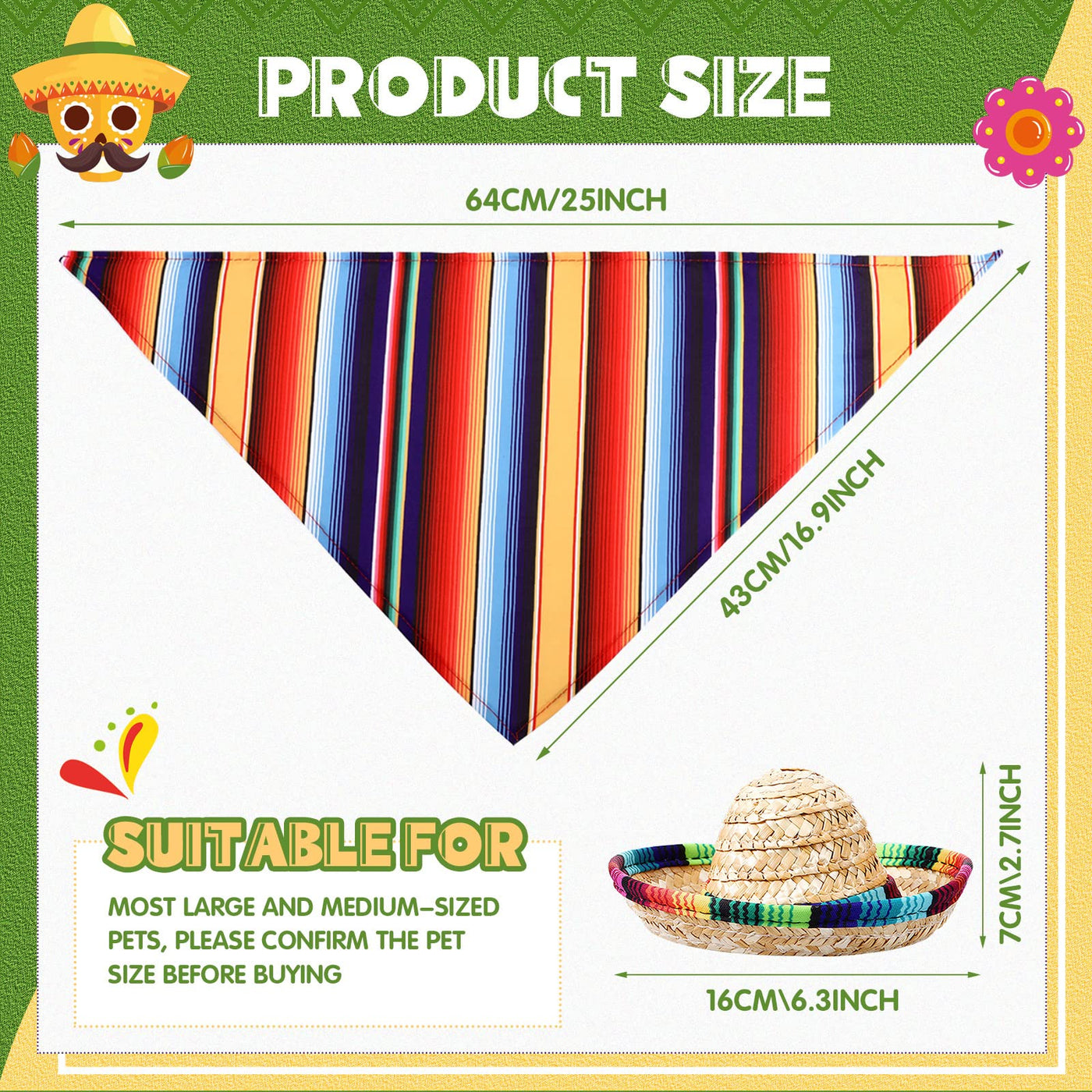 Features: A Good Gift Choice: The Pet Sombrero Hats And Dog Holiday Bandana Set Will Be Thoughtful Presents For Your Lovely Dogs Or People Who Have Pets On Birthday, Anniversary, Animal Theme Party Or Mexican Theme Party. Embellish Your Living Space: The Kid Sombrero Hat Can Be Applied To Home, Cabinet, Dessert Table, Desk, Office, Bedroom, Living Room And More. Designed With A Rope, You Can Also Hang It On The Wall, Window, Doorknob And Other Places You Want. Specifications: Pet Sombrero Hats: Material: Straw Color: As The Pictures Show Size: 16 Cm/ 6.3 Inches In Outer Diameter, 7 Cm/ 2.76 Inches In Inner Diameter, 7 Cm/ 2.76 Inches In Height Cinco De Mayo Dog Bandana: Material: Polyester Color: Colorful Size: 64 X 43 Cm/ 25 X 17 Inches Package Includes: 2 X Cinco De Mayo Dog Bandanas 2 X Pet Sombrero Hats Notes: Manual Measurement, Please Allow Slight Errors On Size. The Color May Exist A Slight Difference Due To Different Screen Displays. In Case Of Risk Of Entanglement, Be Careful When Using.