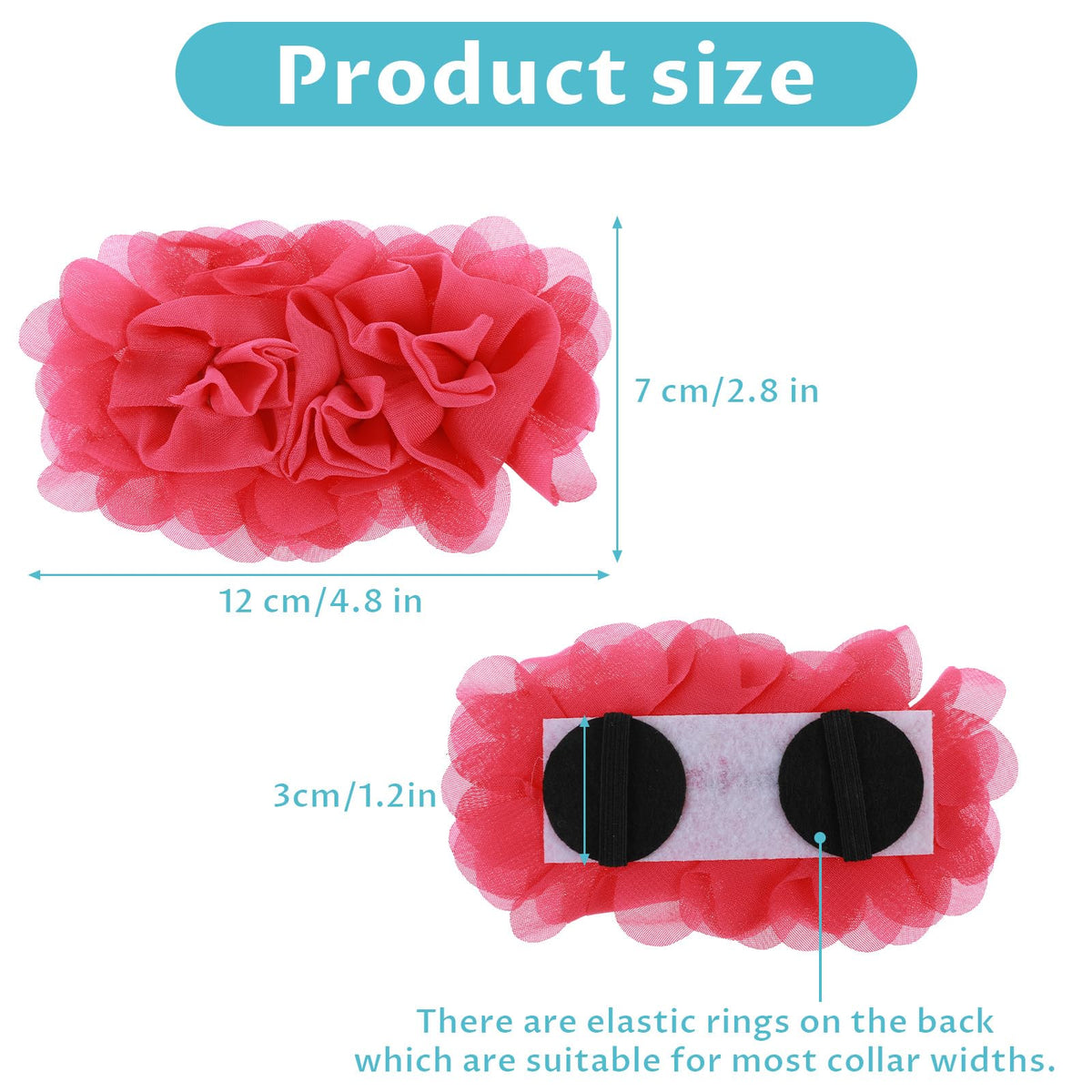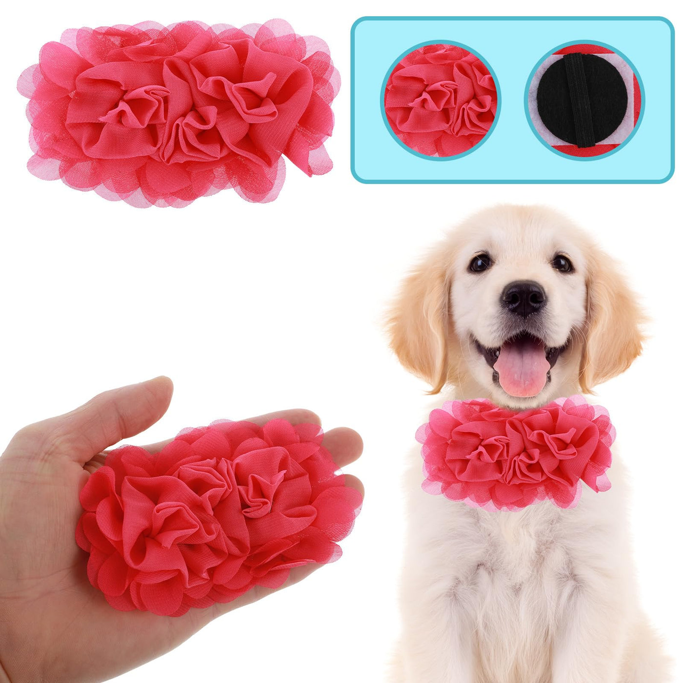 This Dog Collar Accessories Girl Adopts The Unique Design Of Three Flowers, Which Is Easy To Fix And Remove, Suitable For Various Pet Collars And Special Occasions, Making Pets More Charming And Eye-Catching.Product Name: 4Pcs Dog Flower Collar Accessoryproduct Color: Rose Red, Peach, Light Pink And Redproduct Material: Chiffonproduct Size: Flower Length Width 12 7Cm/4.8 2.8Inblack Elastic Band Behind 3Cm/1.2In Longpacking List: 4Pcs Dog Charms For Collar Flower