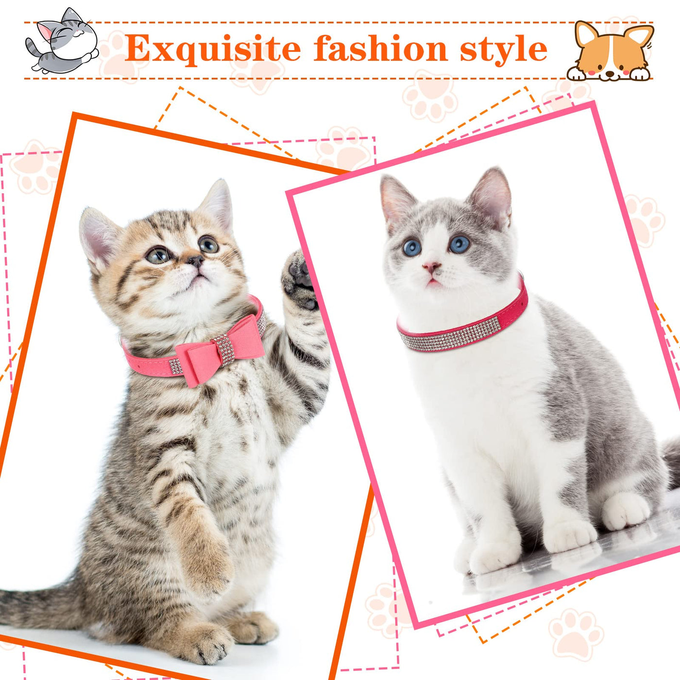 The girl puppy collars are suitable for most breeds of small and medium dogs, such as Chihuahua, Pomeranian, Pugs, Maltese, Poodle, mini dachshund, Boston terrier puppy, Yorkie, Toy poodle, French bulldog puppy, Miniature poodle, etc., and also suitable for most cats.