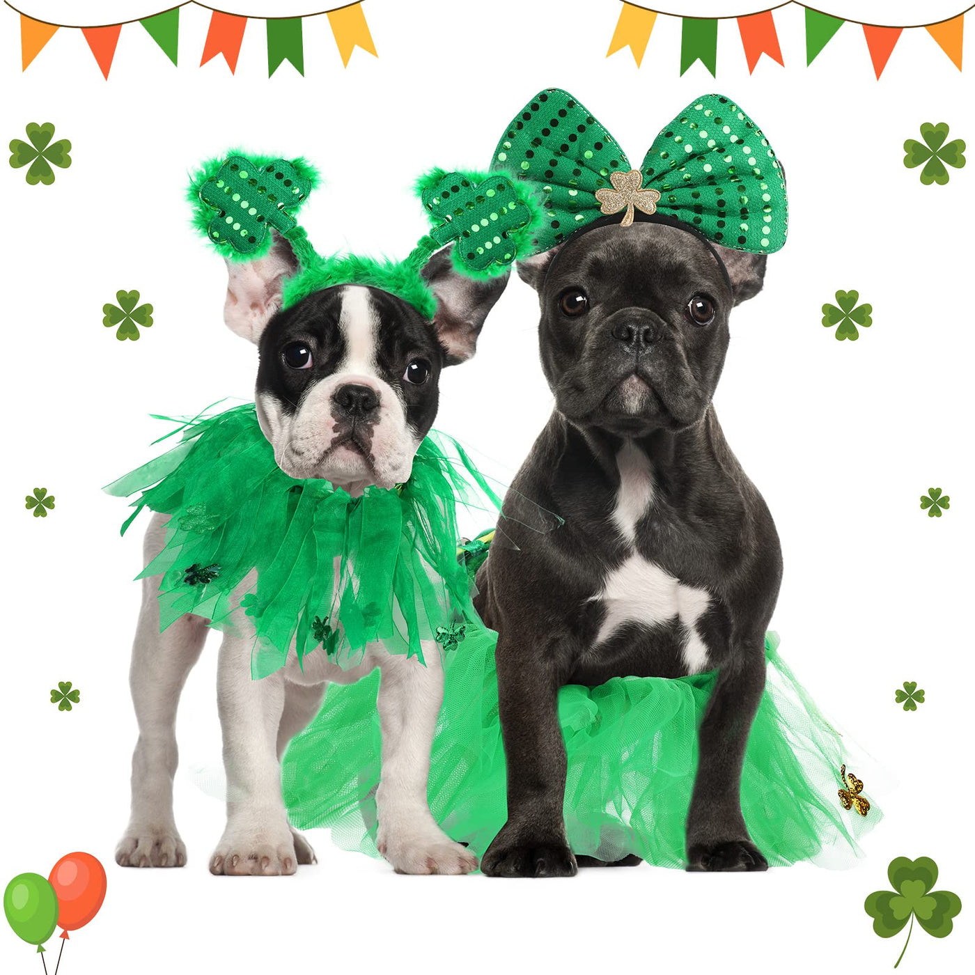 4 Pcs St Patrick'S Day Dog Costume Pet Costume, Tutu For Dogs Sequins Bowtie Shamrock Headband Dog Dress Tutu Collar Green Puppy