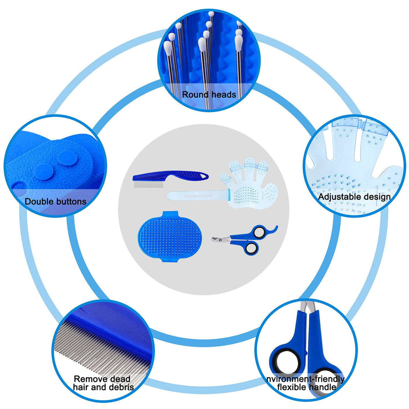 4 Pieces Bunny Grooming Kit: Brush, Hair Remover, Nail Clipper, Shampoo Brush With Adjustable Ring Handle For Rabbits, Hamsters (Blue)