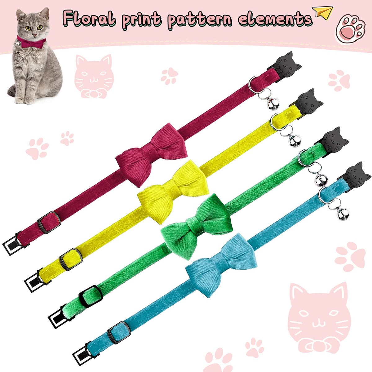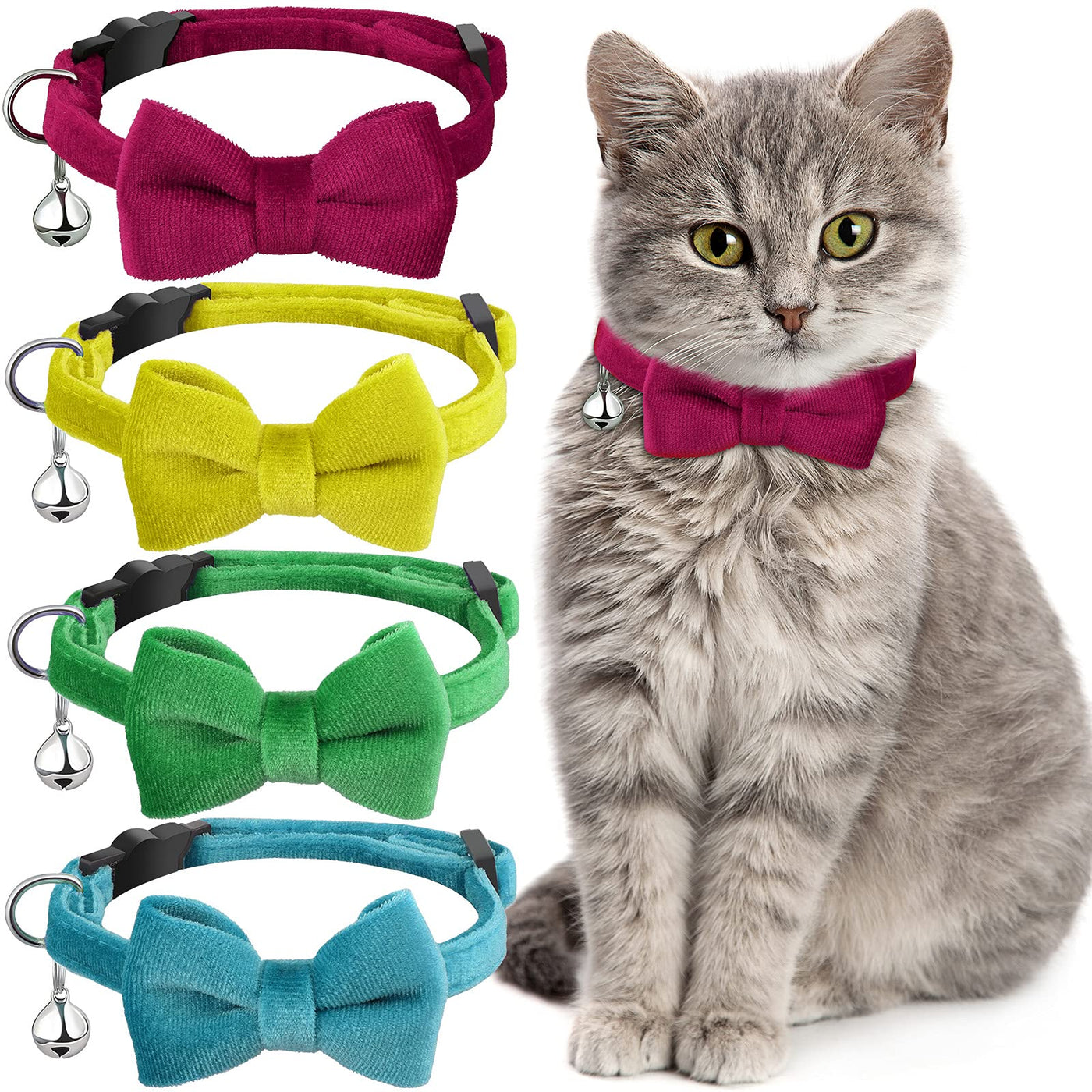 Features: Wide Applications: Not Only Can These Breakaway Cat Collars With Bowtie Be Suitable For Cats' Daily Wearing, But Also Can Be Applied In Outdoor Activities Such As Daily Waking, Going On Vacations, Participating In Parties And So On, Will Make Your Pets More Attractive In The Crowd. Appropriate Size: The Cat Collar Is Light In Weight And Will Not Create Too Much Burden To Your Pets Thanks To Its Quality Material And The Suitable Size, And Easy For You To Carry Around, Will Not Take Up Much Space Of Your House. Specifications: Material: Velvet Colors: As Pictures Shown Size: As Pictures Shown Package Includes: 4 X Cat Collars With Bowtie And Bell Note: Since The Size Above Is Measured By Hand, The Size Of The Actual Item You Received Could Be Slight Different From The Size Above. Due To The Different Monitor And Light Effect, The Actual Color May Be A Little Different From The Picture'S.