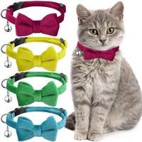 4 Pieces Cat Bow Tie Collar With Bell Breakaway Cat Comfortable Velvet With Cute Safety Pet Collar For Pet Kitten Puppy(Small,Ye