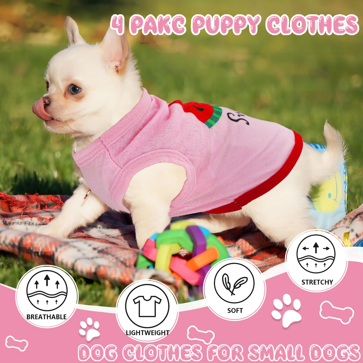 4 Pieces Dog Clothes For Small Dogs Girls Summer Autumn Cute Puppy Clothes Soft Pet Dog Shirts Chihuahua Teacup Dog Cat Clothing
