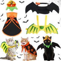 Q: Are the materials used in the pet costumes safe and comfortable?A: Yes, the Halloween costumes are made from high-quality, safe materials. The pumpkin cape is crafted from cloth, while the bat and dragon wings are primarily made of felt. The cute pumpkin hat is made of cotton, which is lightweight, breathable, and skin-friendly, ensuring a comfortable wearing experience for your pets.