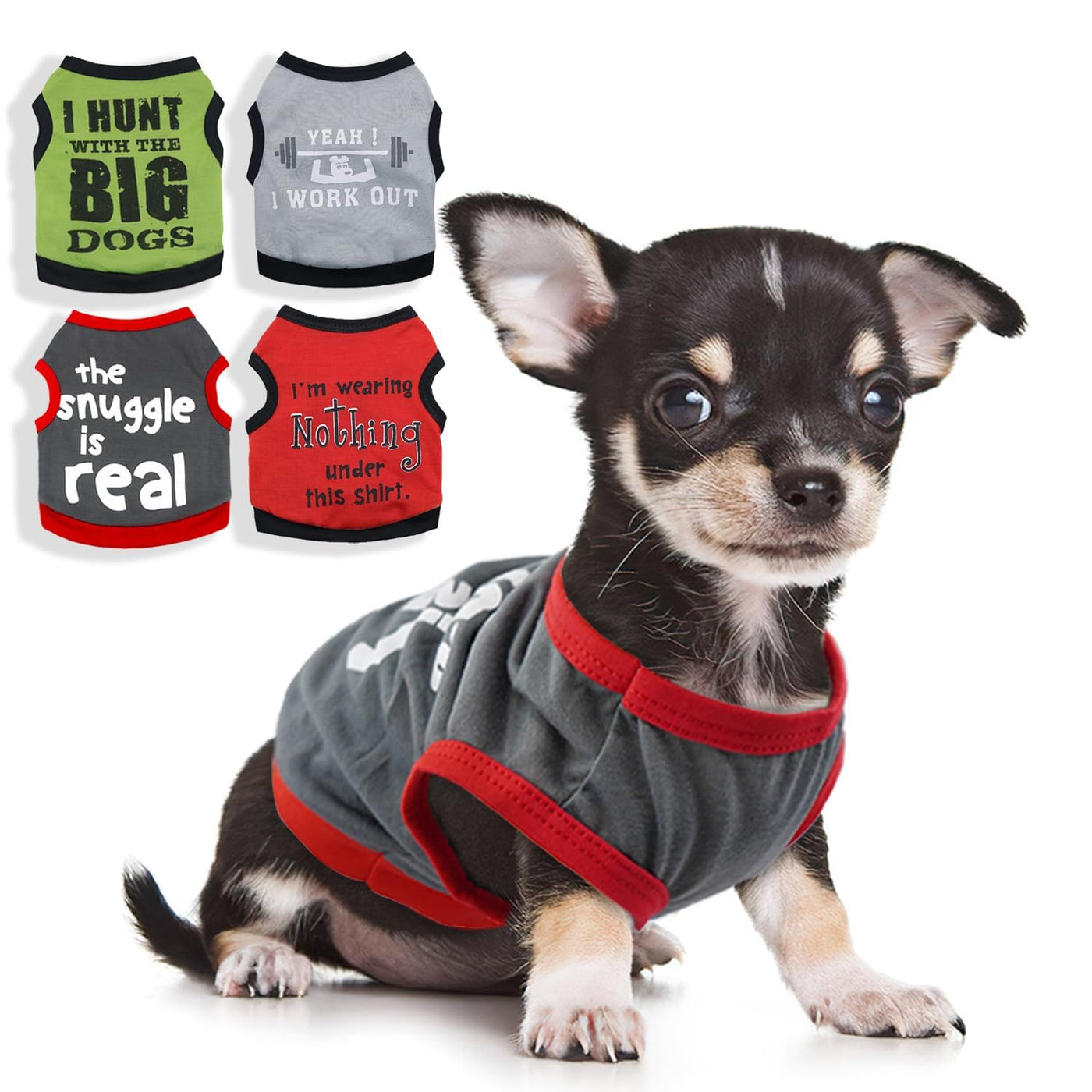 Size Information: XXS Back Length:20cm/7.87in, Bust:30cm/11.81 in,fit in 1.87-3.5 lbs. XS Back Length:25cm/9.84 in, Bust:35cm/13.77 in,fit in 3.5-5.5 lbs. S Back Length:30cm/11.84 in, Bust:40cm/15.74 in,fit in 5.5-8.8 lbs. M Back Length:35cm/13.77 in, Bust:45cm/17.71 in,fit in 8.8-14.3 lbs. Dog Shirt Striped Cotton Shirt,Pet Breathable Soft Basic Clothes for Small Medium Boy Girl Dogs,Black Blue Specifications: Material: fabric Color : Green,Grey,red,deep Grey Package includes: 4 Pieces dog clothes Dog Shirts Clothes Dog Clothes Plain Dog T-Shirt Vest, Dog Shirts Clothes Fit for Extra Small Medium Size Dog Puppy Feature: Dog Shirts Summer Printed Puppy Clothes Cute Pet T Shirts Dog Clothes for Small Medium Dogs Cats Girl. Perfect for Everydays Wear, Weekend Parties, Birthdays, Weddings, Parades, Photo Shoot or Play date. Fit for Chihuahua, Poodle. Cup poodle, Yorkshire terrier, Bichon Frise, Cocker spaniel, Pomeranian, Cat, rabbit, fox and other small breed dogsoutfit.