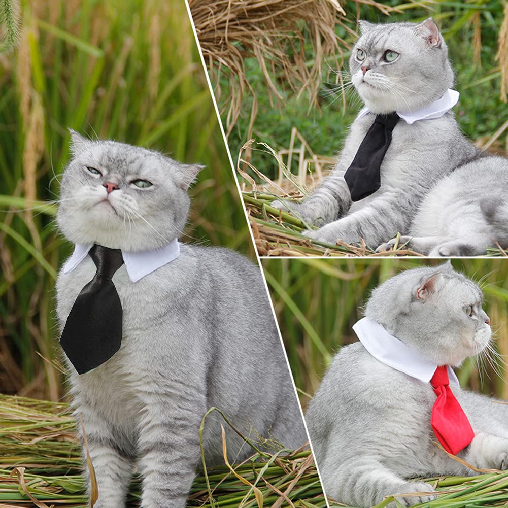 Q: What types of pets are these bowtie and necktie suitable for?A: These accessories are ideal for small dogs and cats, including breeds like Chihuahua, Pomeranian, Small Poodle, Yorkshire, and short-haired cats like Persian and Puppet.