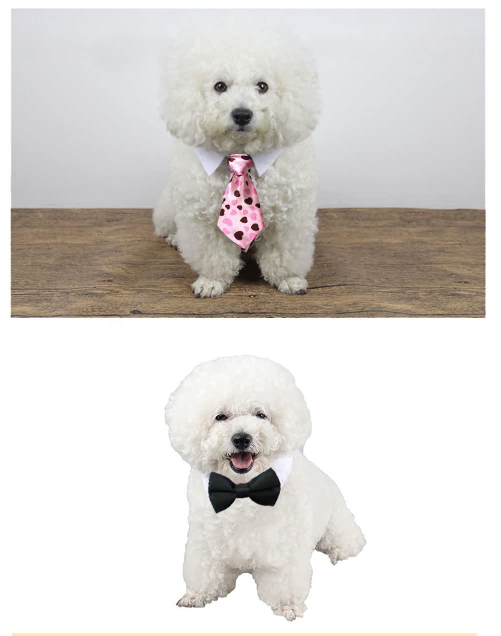 Q: How should I care for the bowties and neckties to ensure their longevity?A: To maintain the quality of the bowties and neckties, it is recommended to clean them gently by hand and avoid exposing them to harsh chemicals. Regularly check for any signs of wear and tear to ensure they remain safe for your pets.