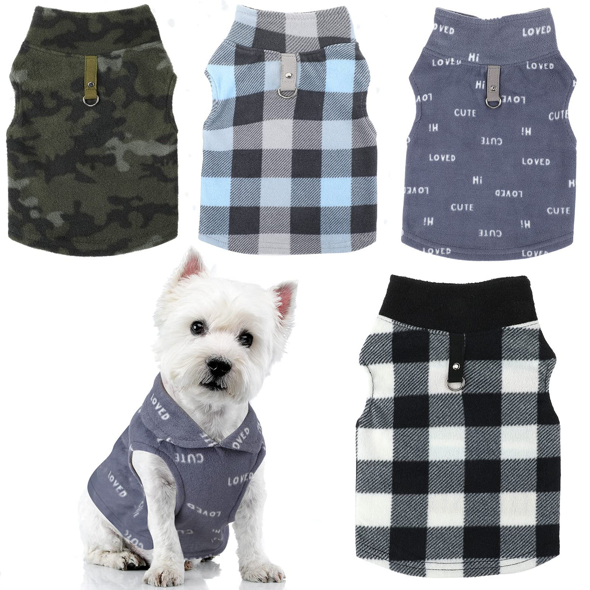 4 Pieces Soft Fleece Vest With Leash Ring Fabric Dog Sweater Camouflage Plaid Winter Fleece Vest Dog Pullover Jacket Warm Pet Do
