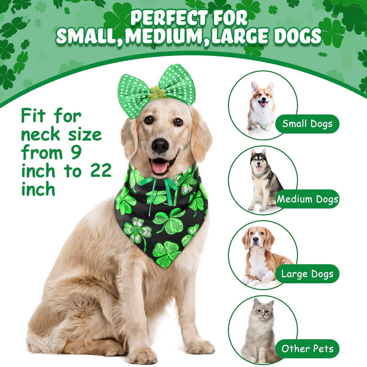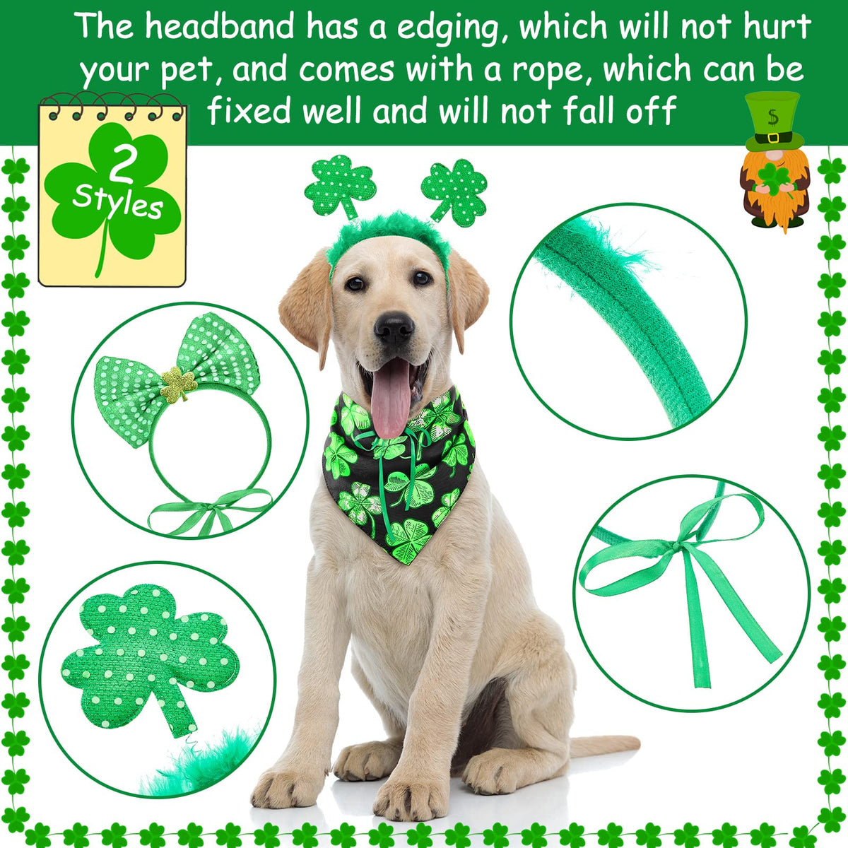 4 Pieces St Patrick'S Day Dog Costume 2 Sequin Irish Shamrock Headband Bowtie 2 Shamrock Dog Bandana Scarf For Pets Costume Deco