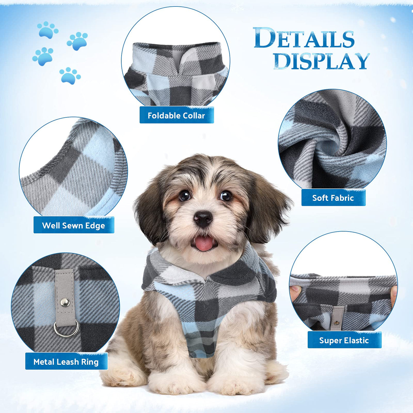4 Pieces Winter Fabric Dog Sweater With Leash Ring Soft Fleece Vest Dog Clothes Plaid Camouflage Warm Puppy Dog Jacket Pullover