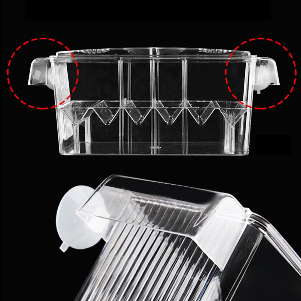 Fish Spawning Box can prevent baby fish from raising the survival rate of baby fish from the attack of adult fish. It is a perfect isolator for aggressive fish, injured fish, small fish, shrimps, clownfish and other marine fish. Material: Acrylic Color: Transparent Size: 8.1 * 3.5 * 4.1inches Package include: 1 x fish incubator 2 x suckers 2 x divider panels 1 x V-shaped center partition 1 x top cover Guarantee: If there is any quality problem with the product you received, please contact us for a replacement product or refund! Tips: Newborn fish have the instinct to hide in tight crevices immediately after they are born. In this case, you had better put something inside for them to hide, such as water plants or moss balls in case that they will get stuck between the net and the plastic frame.
