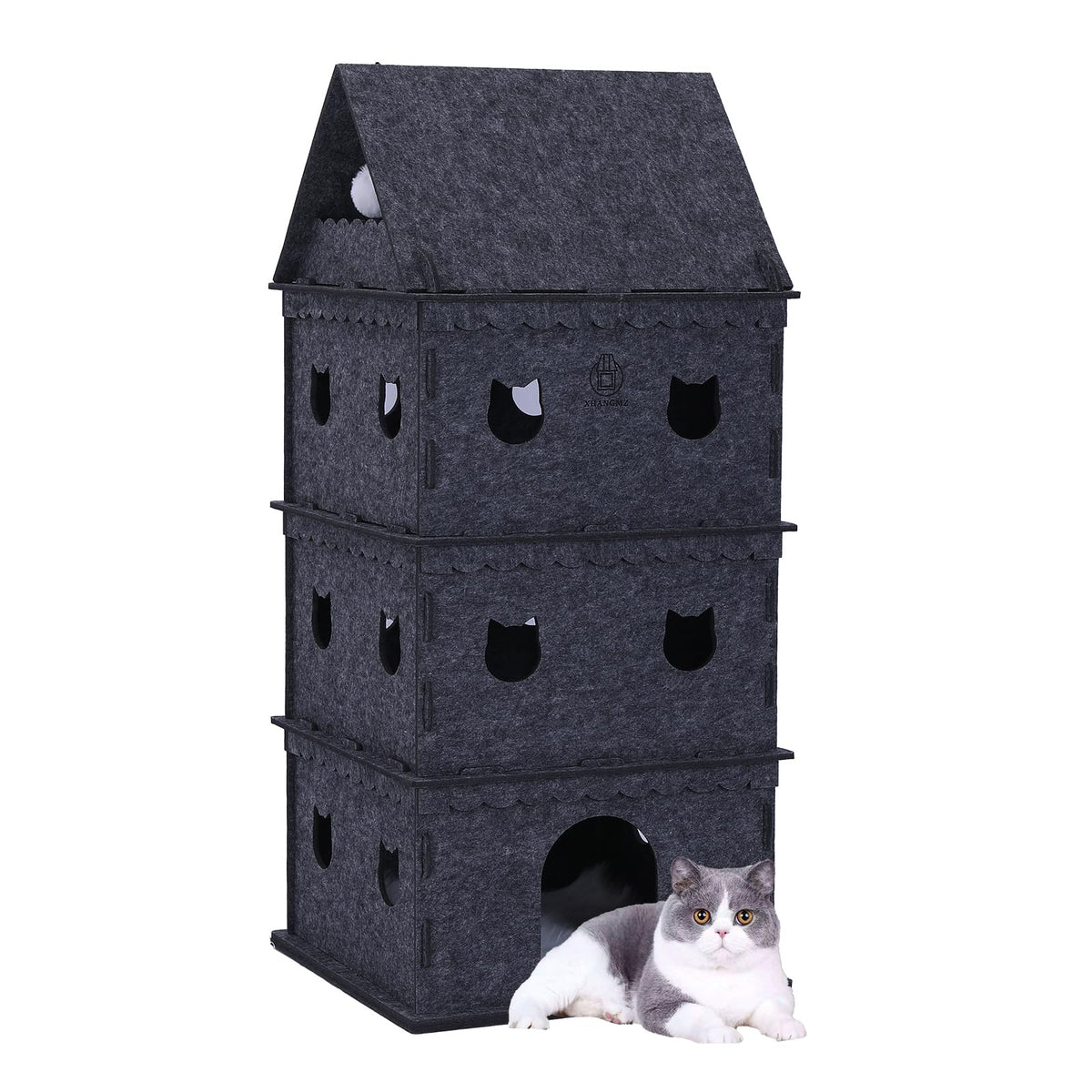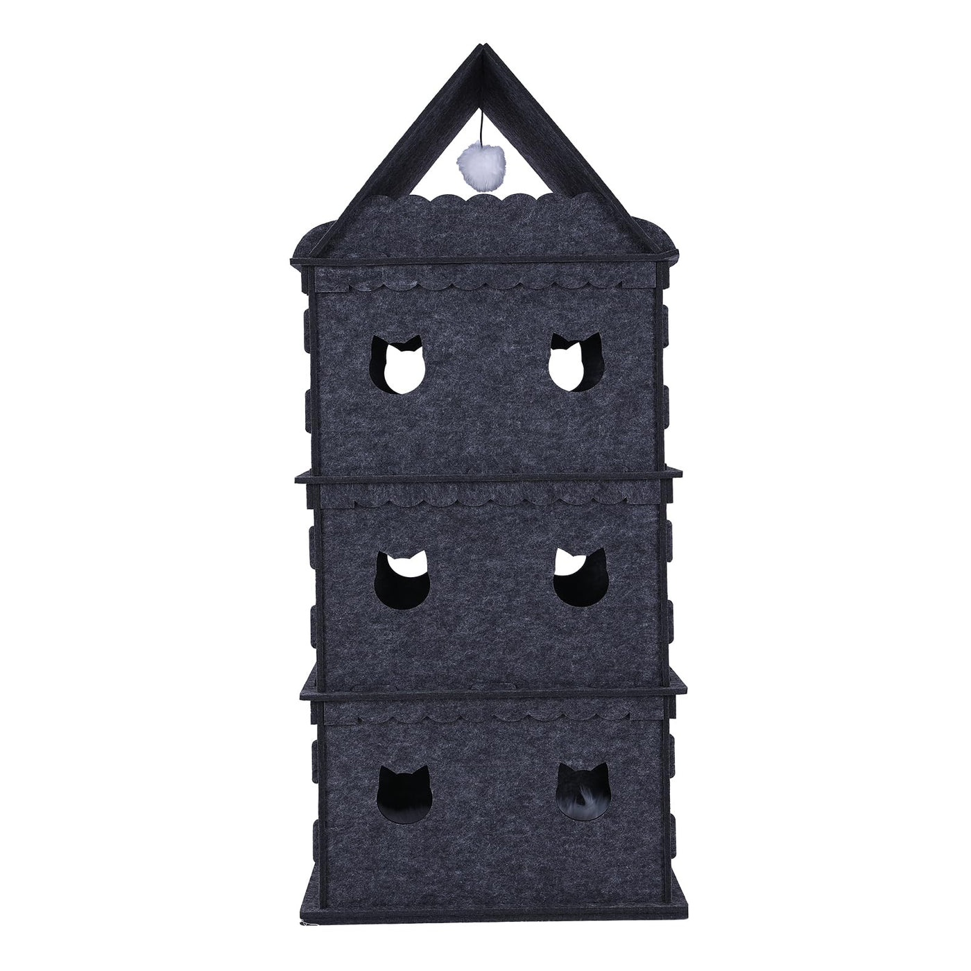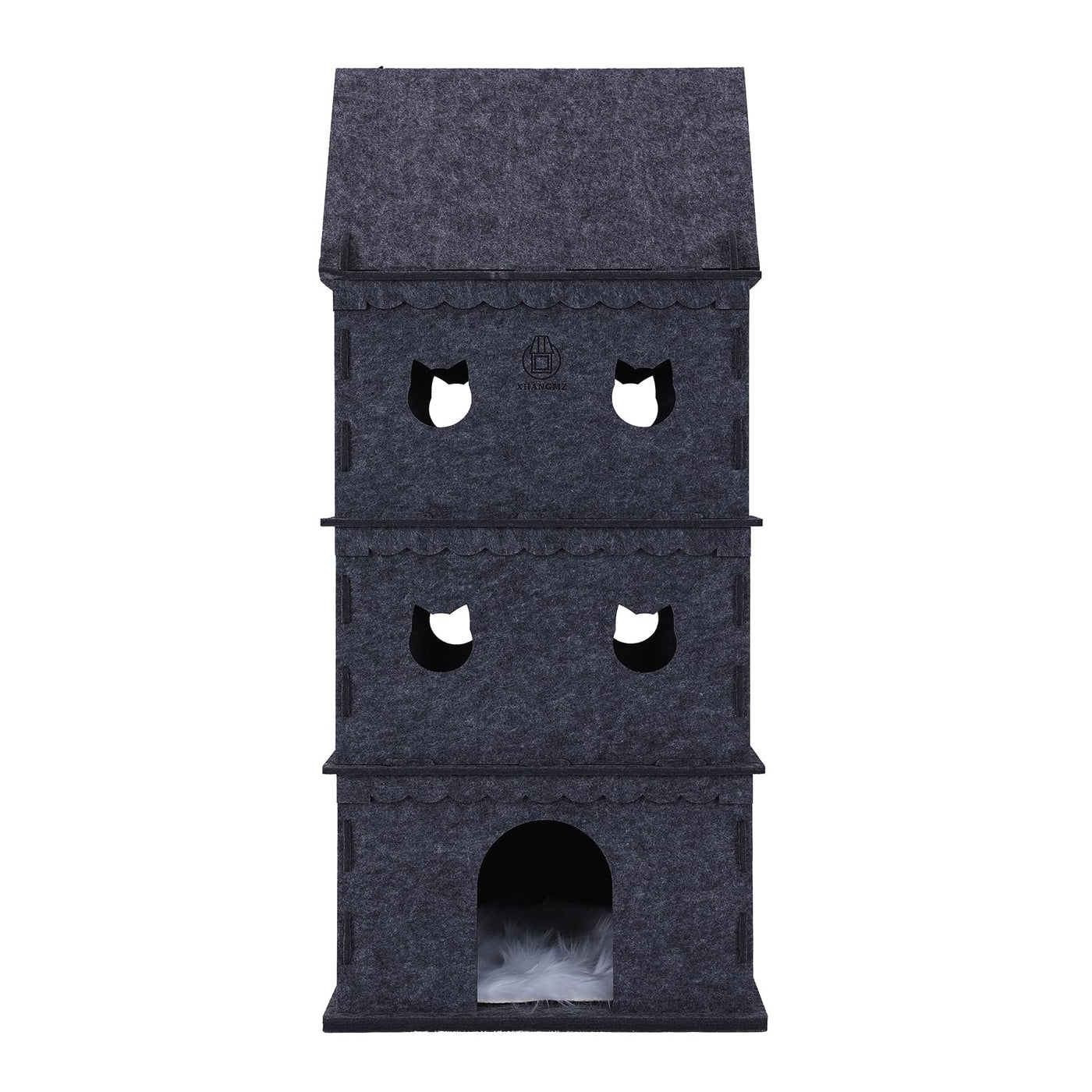 Transform Your Living Space Into A Feline Paradise With This Impressive 4-Storey Cat House. Standing 49 Inches Tall With A 21.8-Inch Square Base, This Multi-Level Cat Condo Provides The Perfect Retreat For Multiple Cats Or Larger Felines. The Charcoal Grey Felt Construction Features Adorable Cat-Shaped Windows Throughout, Allowing Your Pets To Peek Out While Maintaining Their Private Space. The Bottom Level Boasts A Spacious Entrance (6.7 X 9.7 Inches) Perfect For Lounging, While Upper Levels Offer Cozy Nooks With Smaller Openings (3.15 X 3.35 Inches) For Sleeping And Hiding. The Decorative Scalloped Trim And House-Shaped Roof Add A Stylish Touch To Your Home Decor. This Cat Castle Provides Various Levels For Climbing, Playing, And Resting, Satisfying Your Cats' Natural Instincts To Explore Vertical Spaces. The Sturdy Construction Ensures Stability, While The Felt Material Offers Both Comfort And Durability. Whether Your Cats Need A Quiet Spot For Napping Or A Watchtower To Survey Their Domain, This Multi-Level Cat House Delivers Both Functionality And Style.