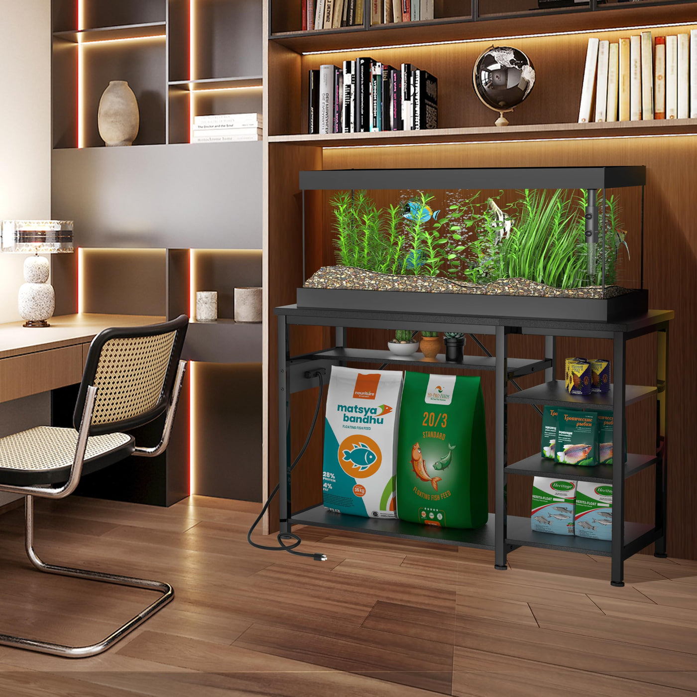 40-55 Gallon Fish Tank Stand: Heavy Duty Aquarium Stand with Power Outlets and Cabinet for Fish Tank Accessories Storage - Metal