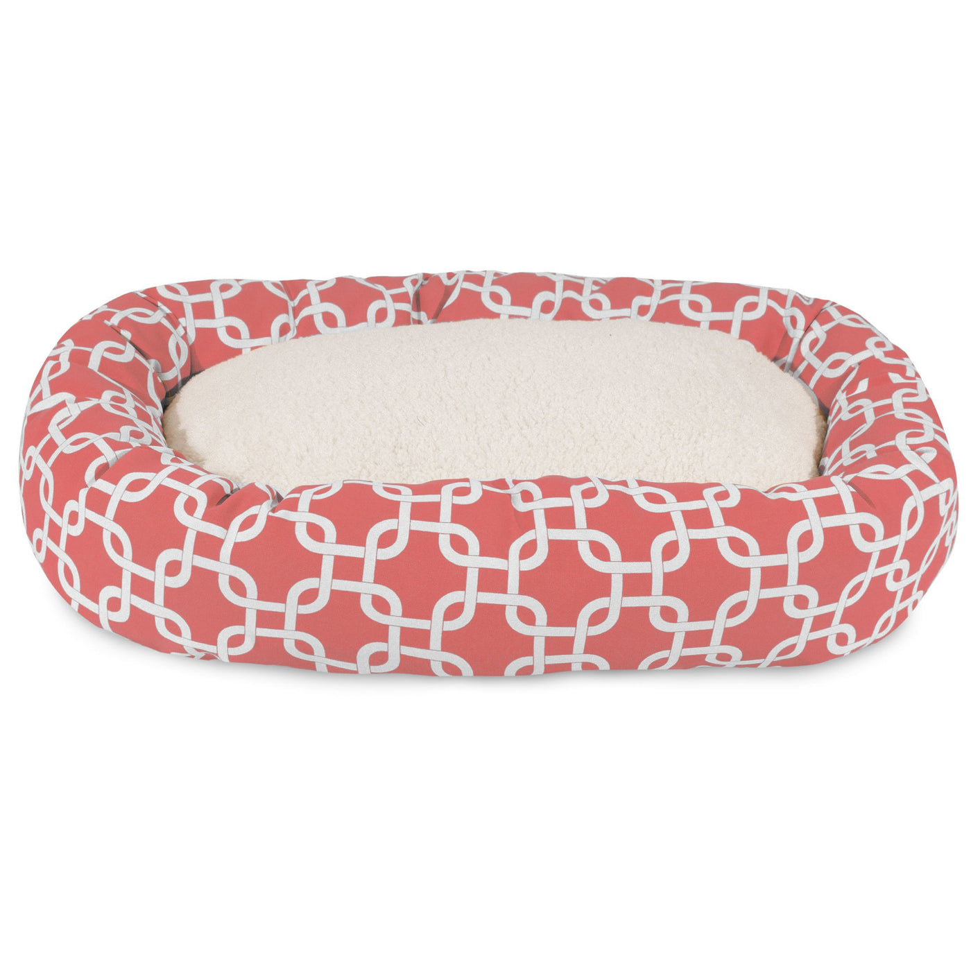 Majestic Pet Product 40 Links Large Bagel Style Dog Bed with Sherpa CenterOutside Dimensions: 40L x 29WInside Dimensions: 30L x 18WBolster: 9HCushion: 8HOutside material: Outdoor treated polyester, sherpa centerInside material: Premium High Loft Polyester Fiber FilWashing Instructions: Place entire dog bed or removable slipcover into washer and dryer on gentle cycle, air dryWe, at Majestic Pet Products, agree with you: comfort is a must have when taking care of dogs and pets, no matter their age or size.Recovery is a big part for the dog to stay healthy and increase longevity.And thats why we offer a super comfortable round-shaped pet beds, available in FOUR different sizes.All in soft, comfortable construction for their maximum comfort.It is made with stable design on soft durable cotton / polyester material that is easy to clean and maintain.The Majestic Pet Bagel Dog Bed is available in four different sizes:Small: 24 x 19 x 7 -- Dogs 10 to 25 lbs. recommendedMedium: 32 x 23 x 8 -- Dogs 25 to 40 lbs. recommendedLarge: 40 x 29 x 9 -- Dogs 40 to 70 lbs. recommendedOversize: 52 x 36 x 14 -- Dogs 70 to 110 lbs. recommended