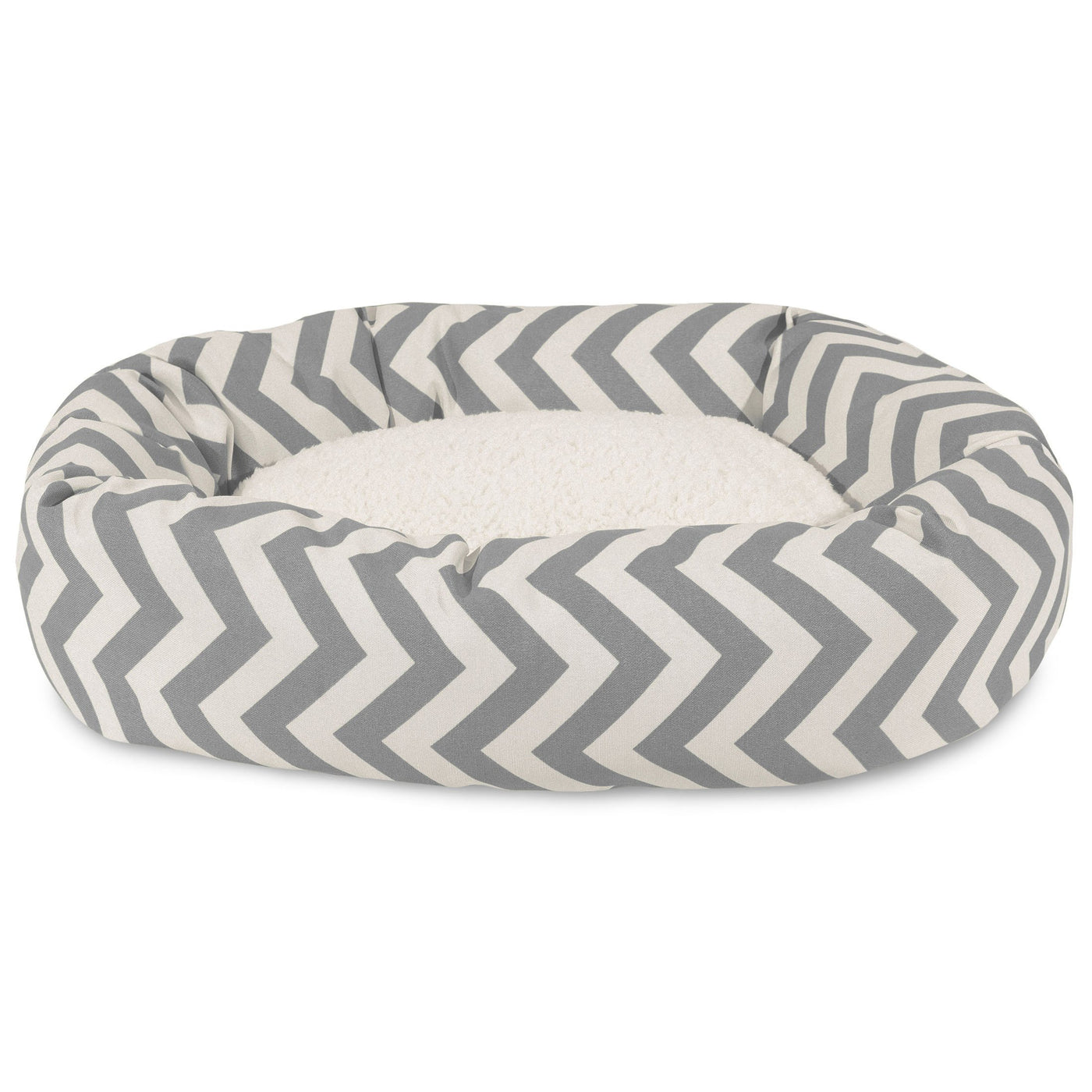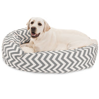 Majestic Pet Product 40' Chevron Large Bagel Style Dog Bed with Sherpa CenterOutside Dimensions: 40'L x 29'WInside Dimensions: 30'L x 18'WBolster: 9'HCushion: 8'HOutside material: Outdoor treated polyester, sherpa centerInside material: Premium High Loft Polyester Fiber FilWashing Instructions: Place entire dog bed into washer and dryer on gentle cycle, air dryWe, at Majestic Pet Products, agree with you: comfort is a must have when taking care of dogs and pets, no matter their age or size.Recovery is a big part for the dog to stay healthy and increase longevity.And that's why we offer a super comfortable round-shaped pet beds, available in FOUR different sizes.All in soft, comfortable construction for their maximum comfort.It is made with stable design on soft durable cotton / polyester material that is easy to clean and maintain.The Majestic Pet Bagel Dog Bed is available in five different sizes:Small: 24' x 19' x 7' -- Dogs 10 to 25 lbs. recommendedMedium: 32' x 23' x 8' -- Dogs 25 to 40 lbs. recommendedLarge: 40' x 29' x 9' -- Dogs 40 to 70 lbs. recommendedOversize: 52' x 36' x 14' -- Dogs 70 to 110 lbs. recommended