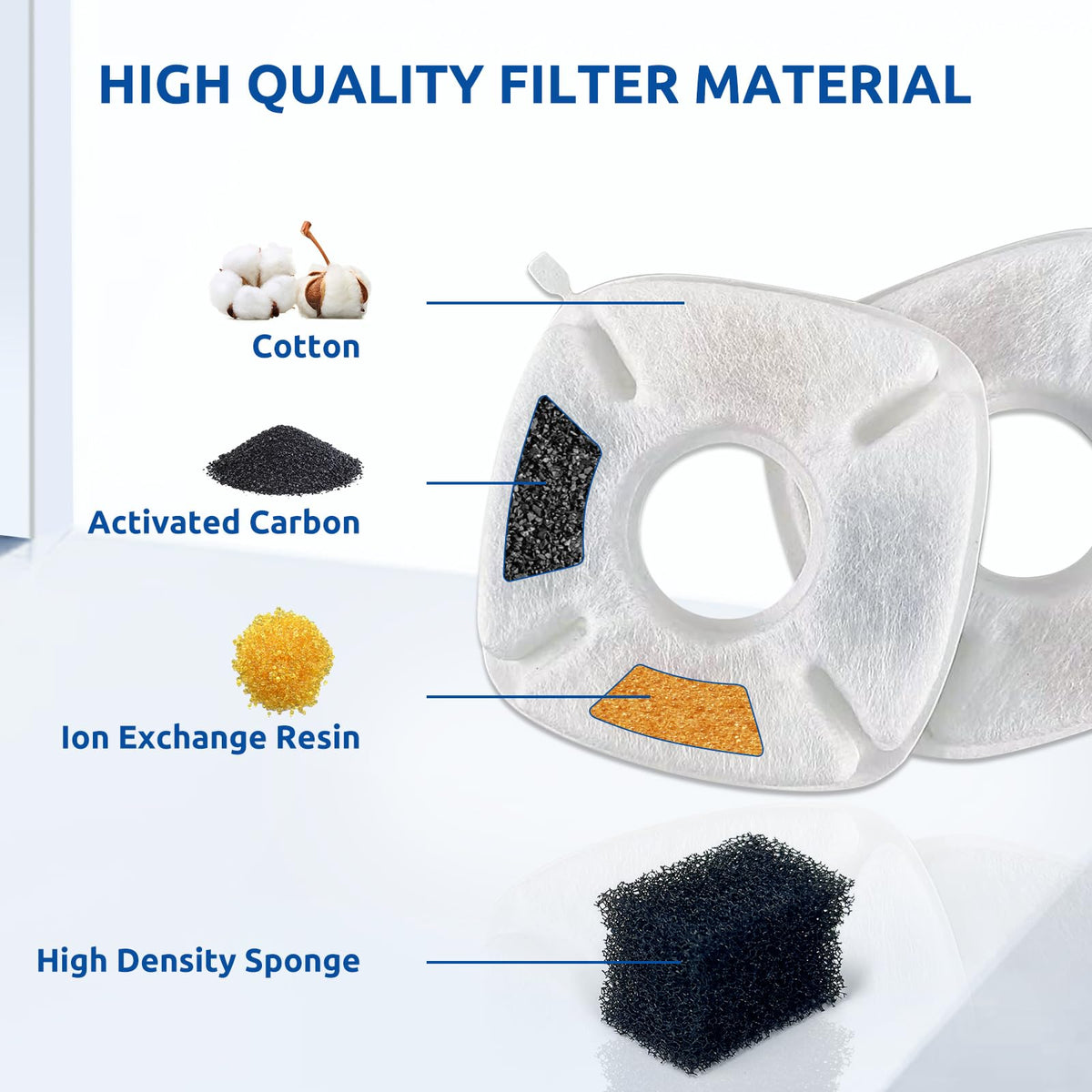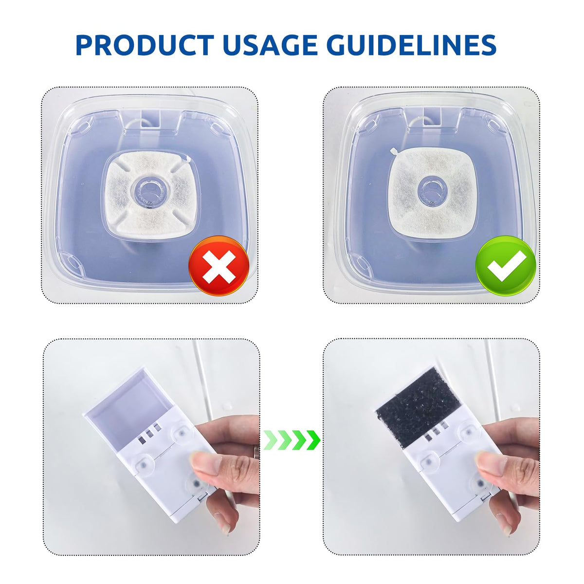 Recommendations For Use: To Prevent Activated Carbon Dust From Dislodging Into The Water, Soak The Cat Fountain Filter In Water For 2-3 Minutes Before Use, Then Rinse Thoroughly With Running Water For 30 Seconds Before Use. It Is Recommended To Change The Filter Once Every 1 To 2 Weeks In Summer And 2 To 4 Weeks In Winter. If More Than One Cat Uses The Fountain, The Filter Needs To Be Changed More Frequently.