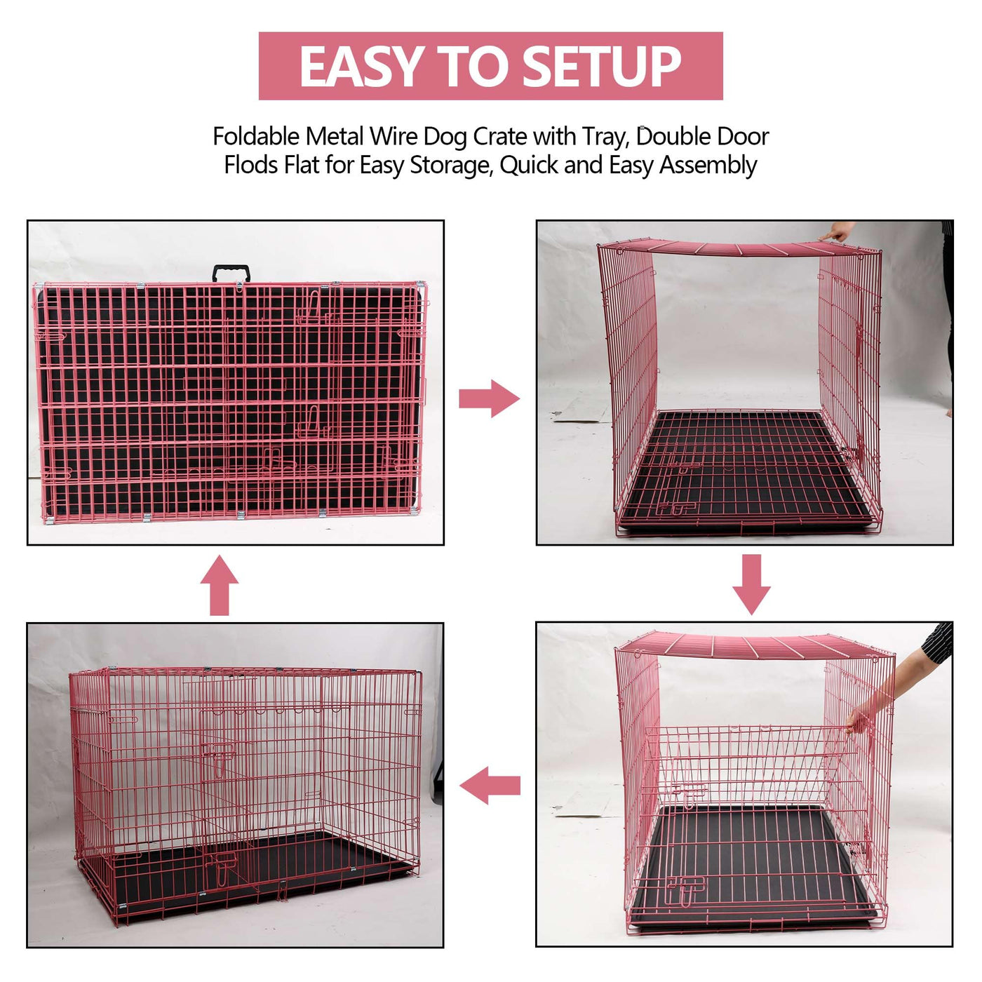 42 Inch Extra Large Dog Crate, Heavy Duty Dog Crates For Large Dogs, Metal Wire Folding Dog Cage With Removable Trays, Locks, Do