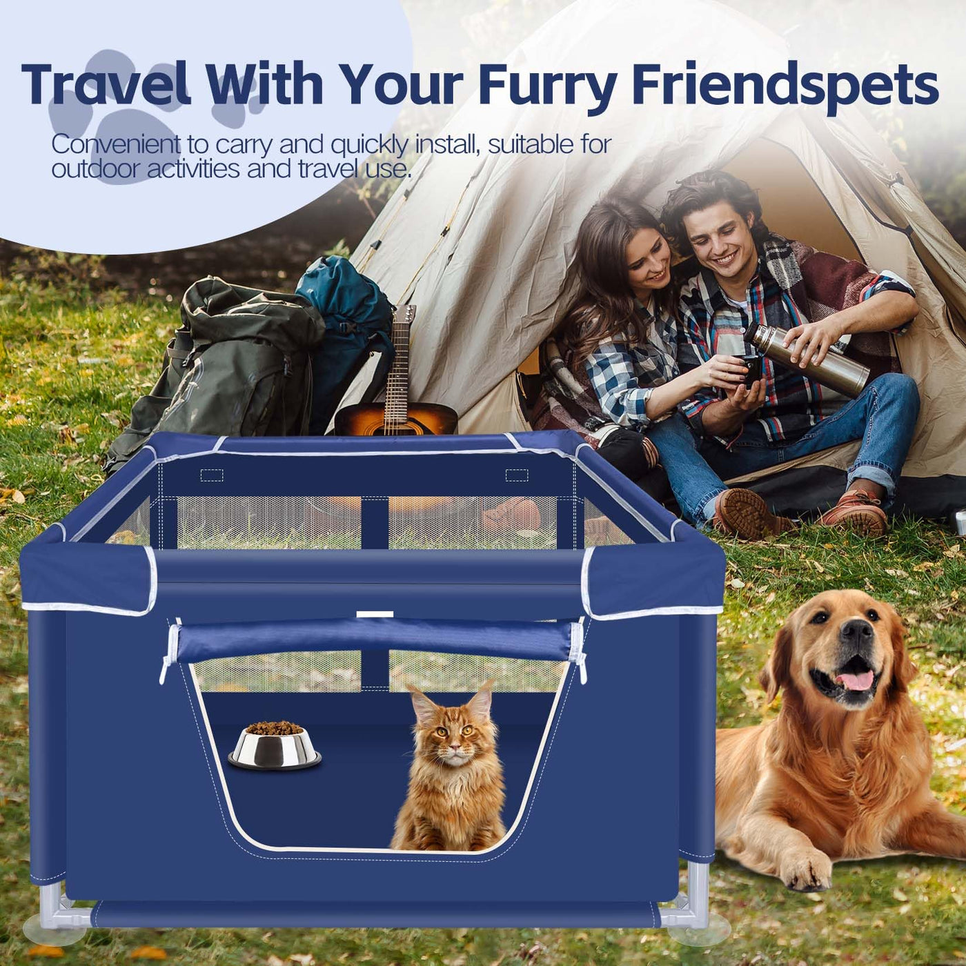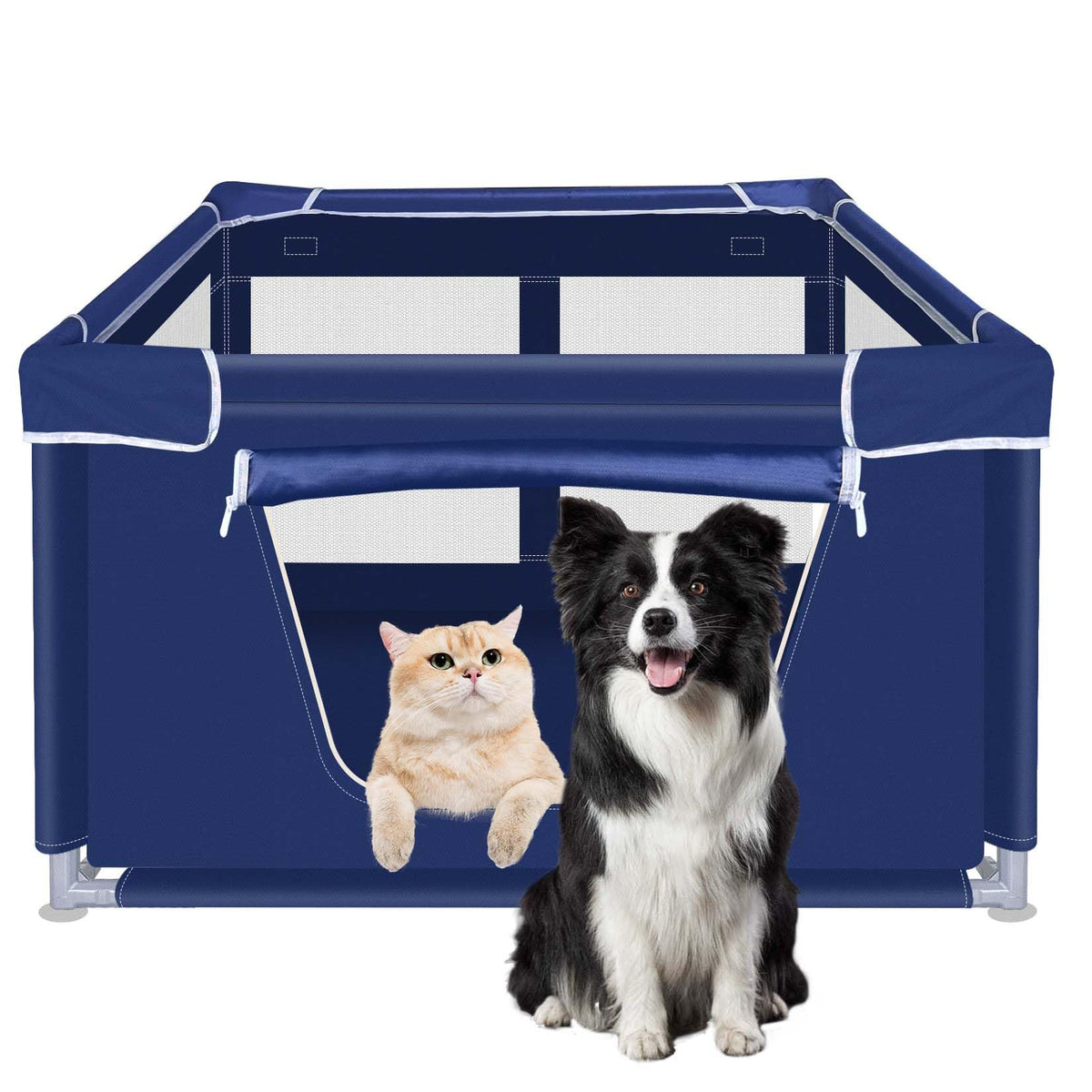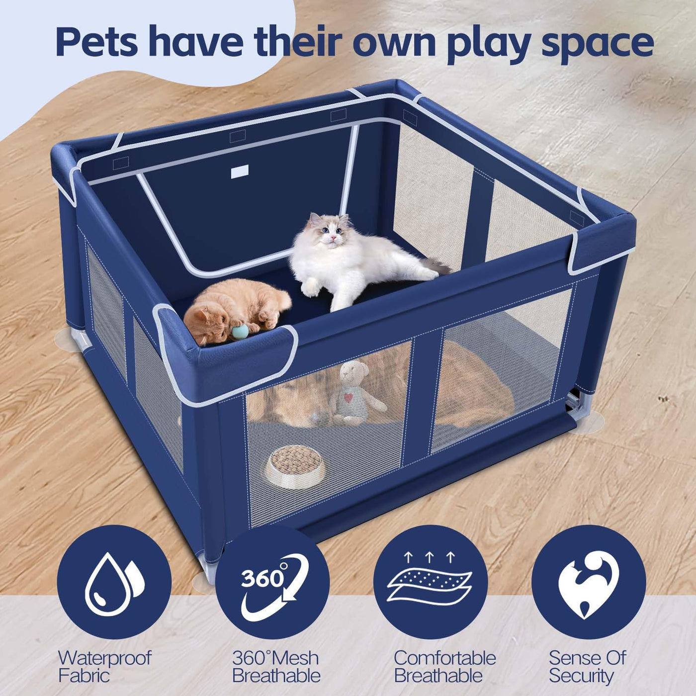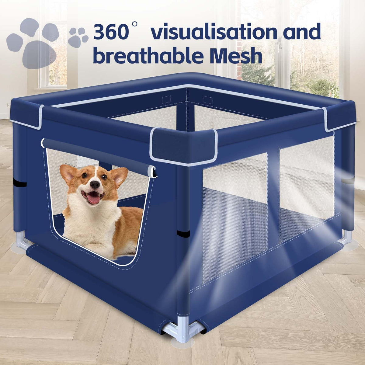 42X42X25.6 Inches Dog Playpen, Foldable Portable Soft Puppy Playpen With Gate, Thickened Fabric Mesh Dog Fence With High-Strengt