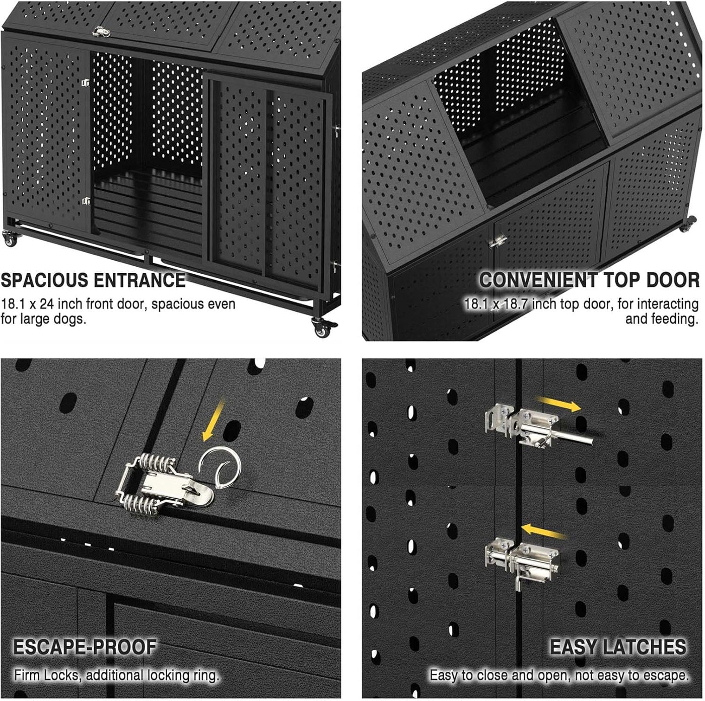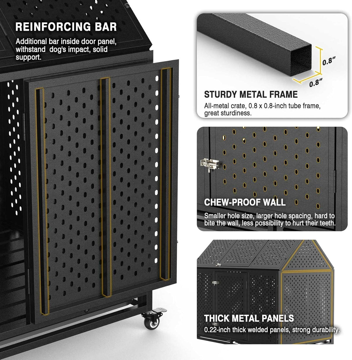 44 Inch Heavy Duty Indestructible Dog Crate, Escape Proof Dog Cage Kennel With Lockable Wheels, High Anxiety Double Door, Extra