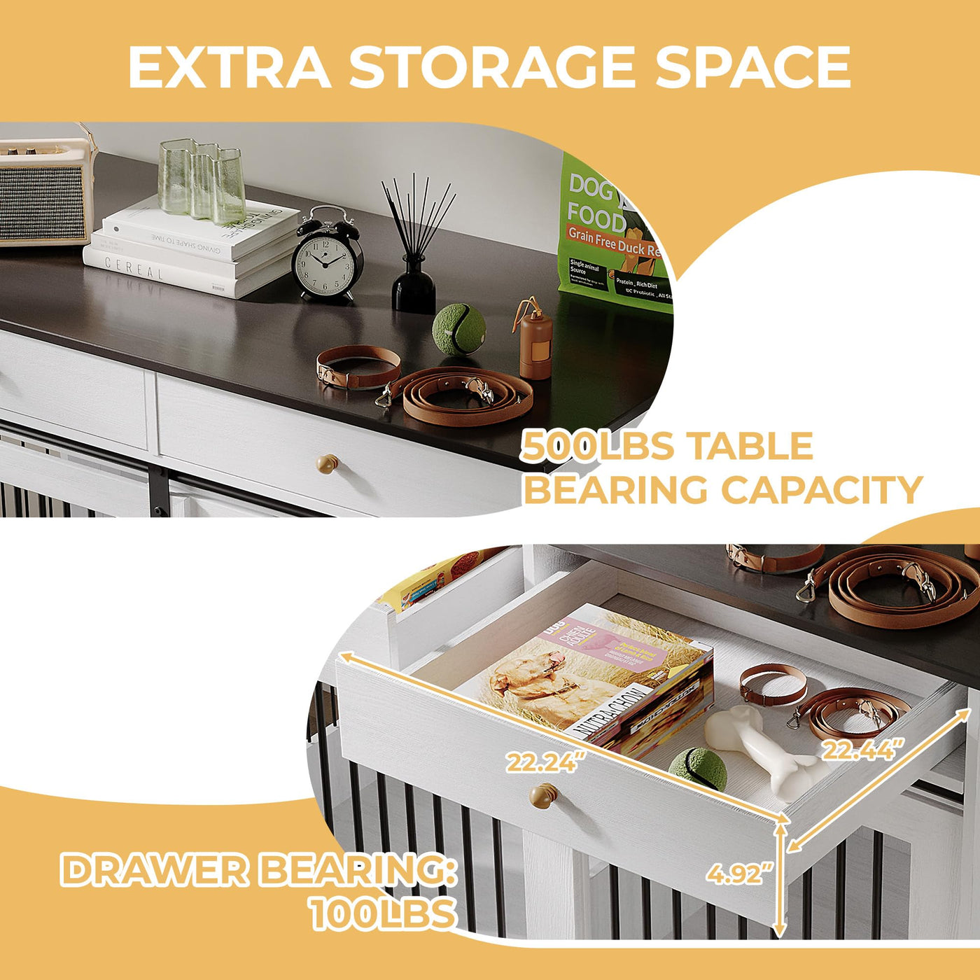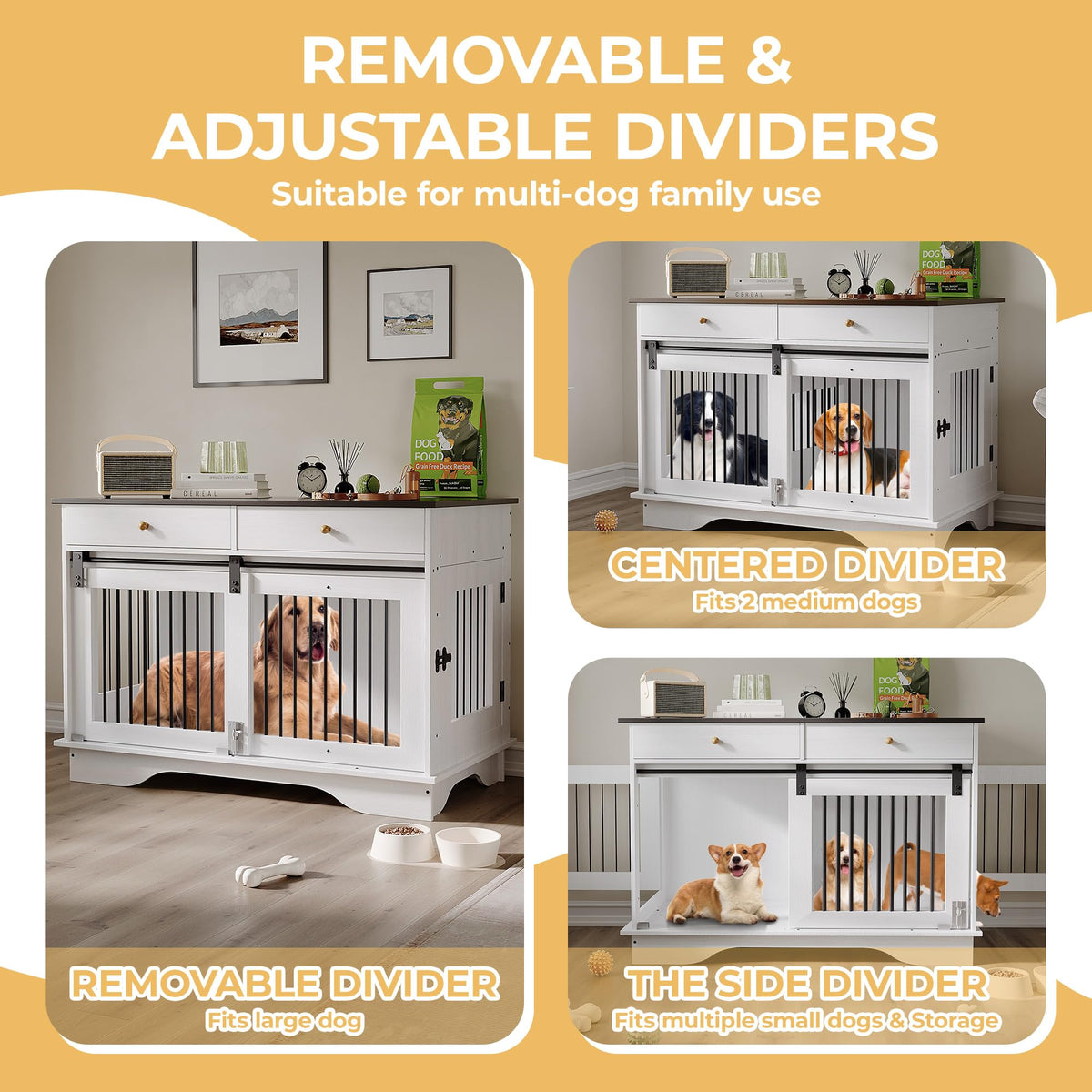 47 Dog Furniture Crate, Large Furniture Style Dog Crate w/ 2 Storage Draws & Removable Divider & Triple Door Design for Large/Me