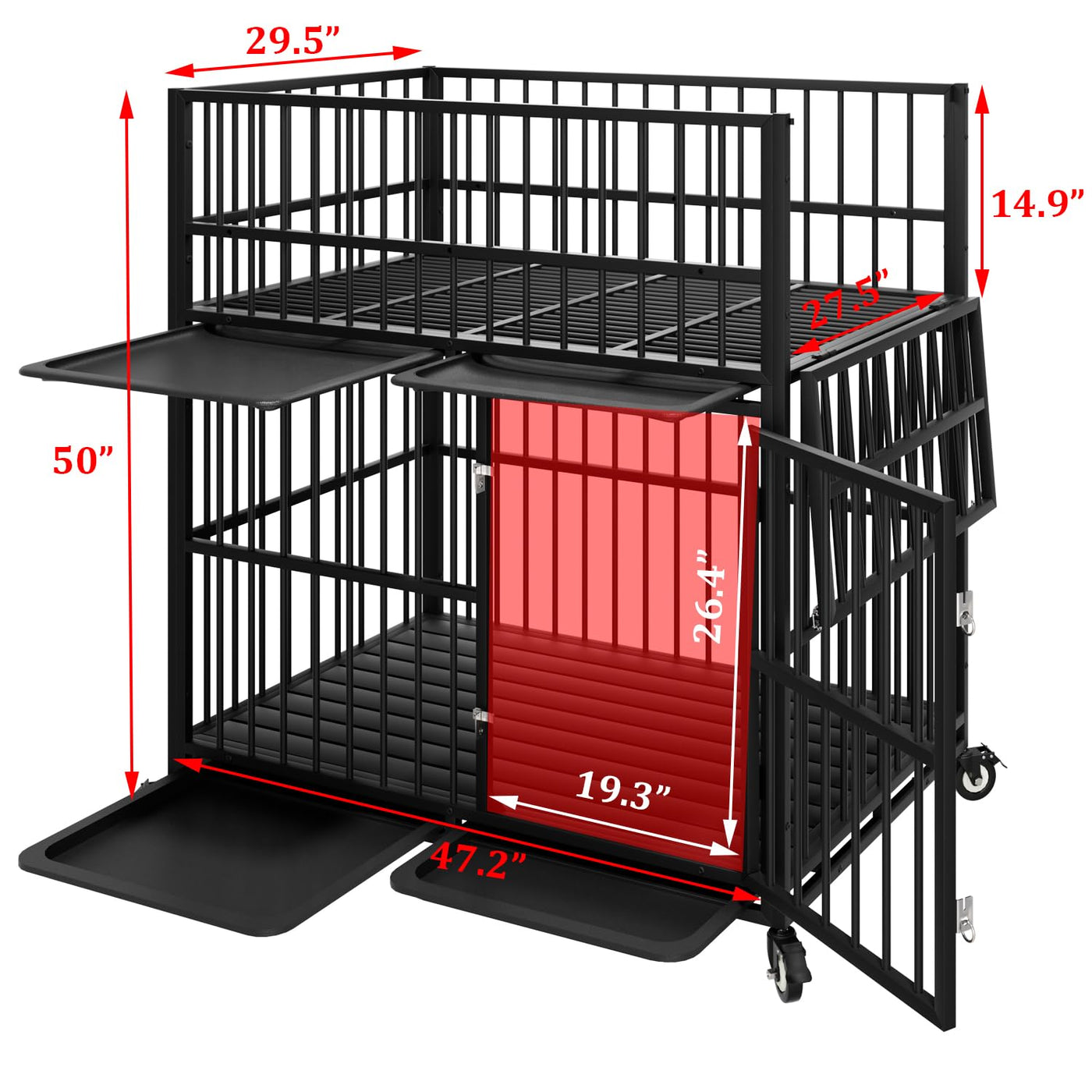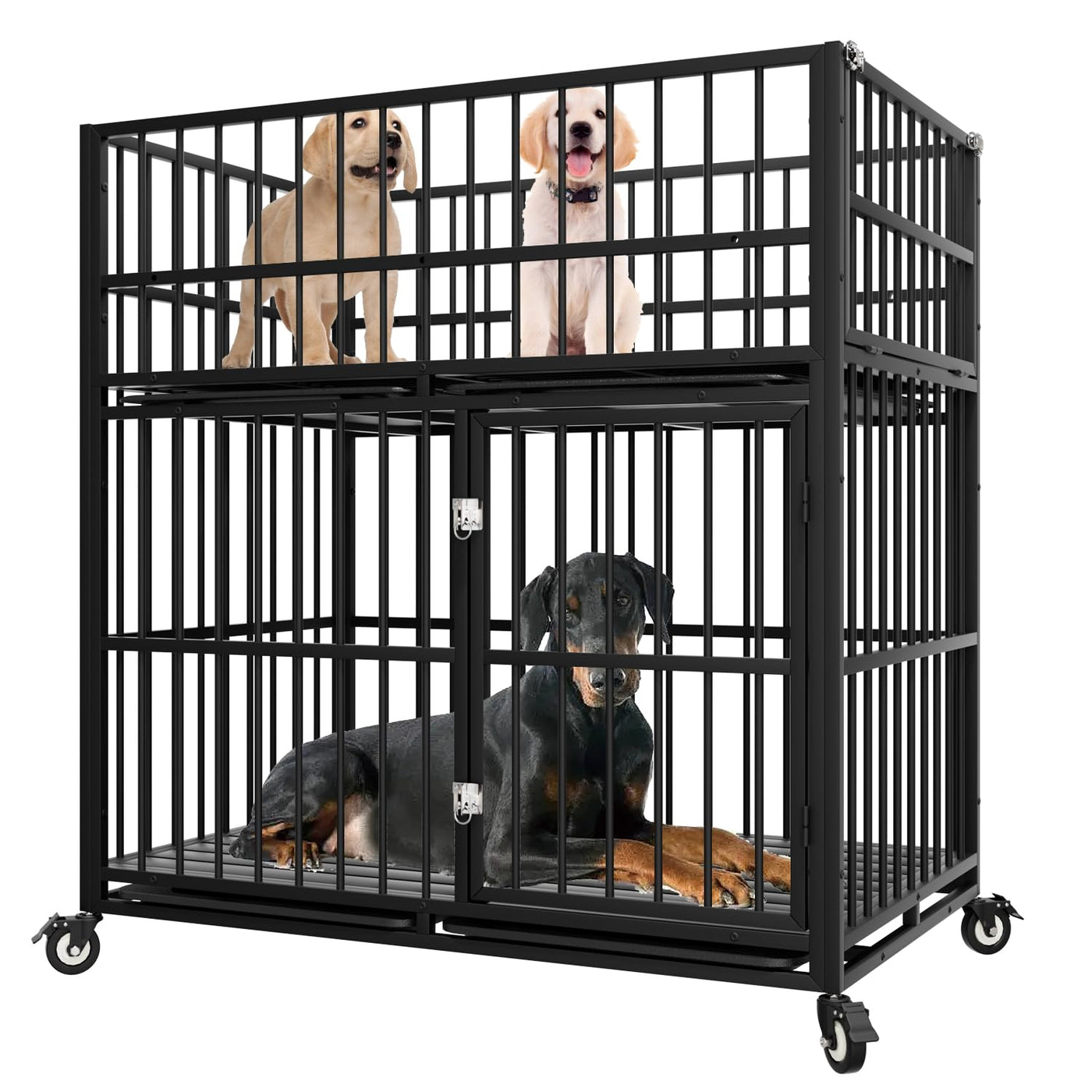 48 Inch Heavy Duty Indestructible Dog Crate, Strong Steel Escape-Proof Double Sub-Mother Breeding Cage For Large Dogs, Impact Ch