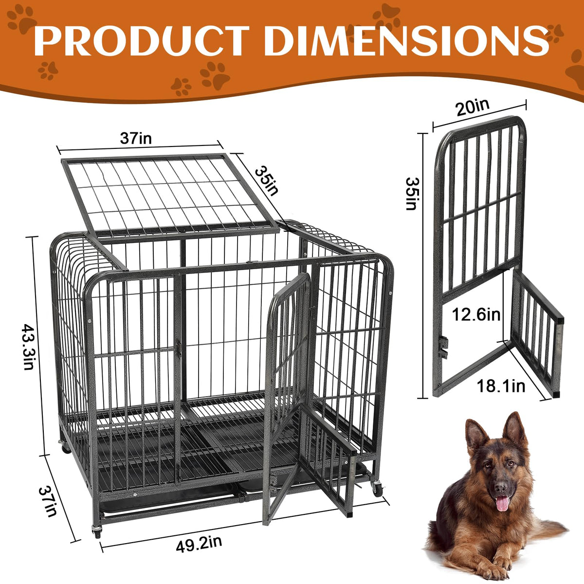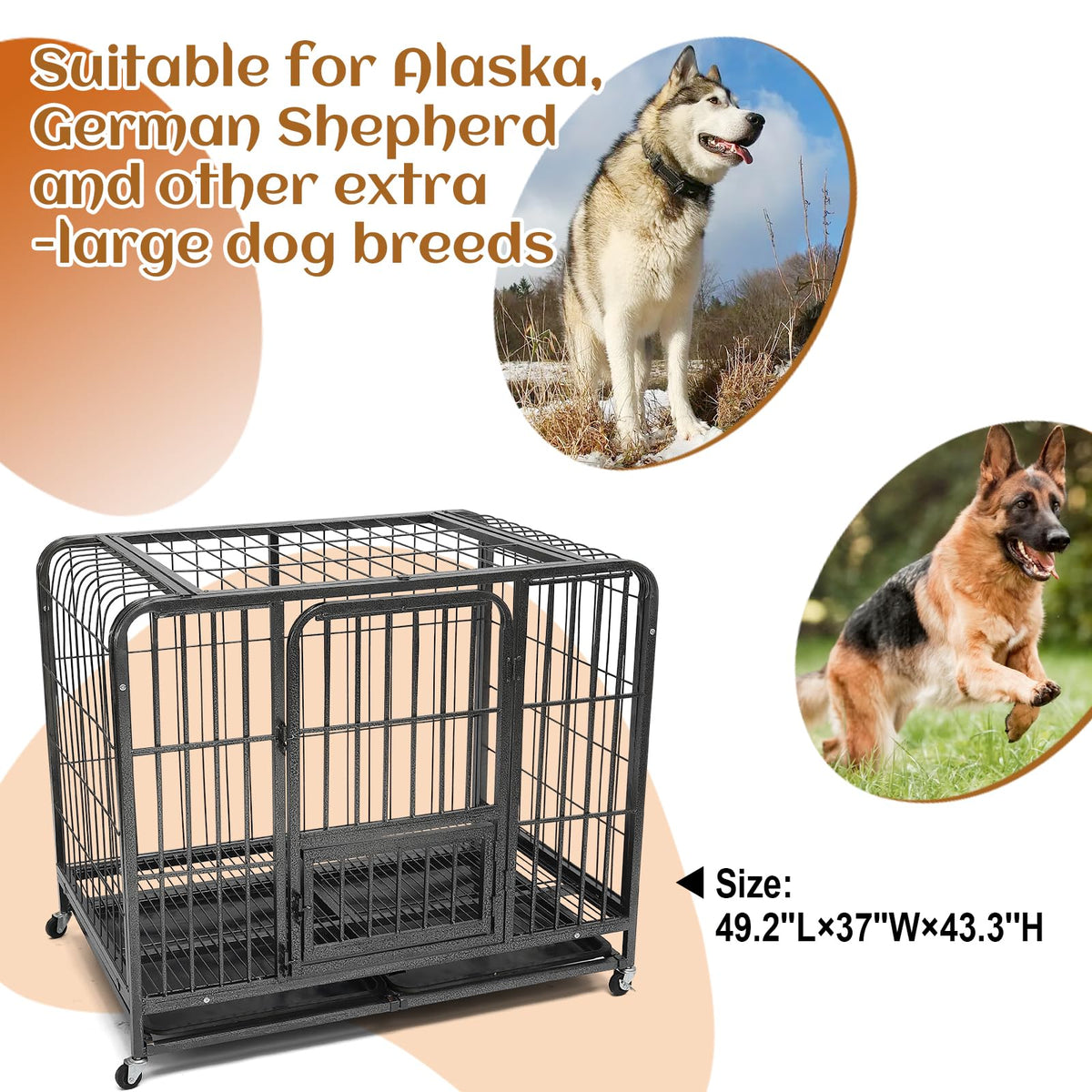 49.2Inch Indestructible Metal Dog Crates For Large Dogs, Heavy Duty Escape Proof Dog Kennel Indoor Extra Large Dog Crate With Lo