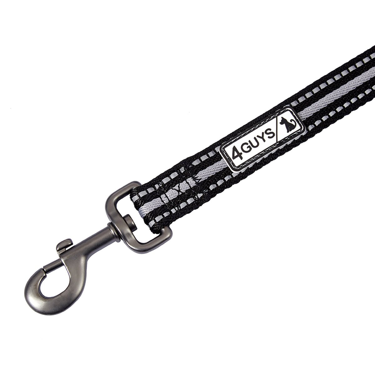 Q: Can I use this leash for two dogs at the same time?A: Yes, the 4GUYS Total Control Dog Leash features sturdy metal clasps that allow it to be attached to two dogs of any size, making it perfect for walking or jogging with multiple pets.