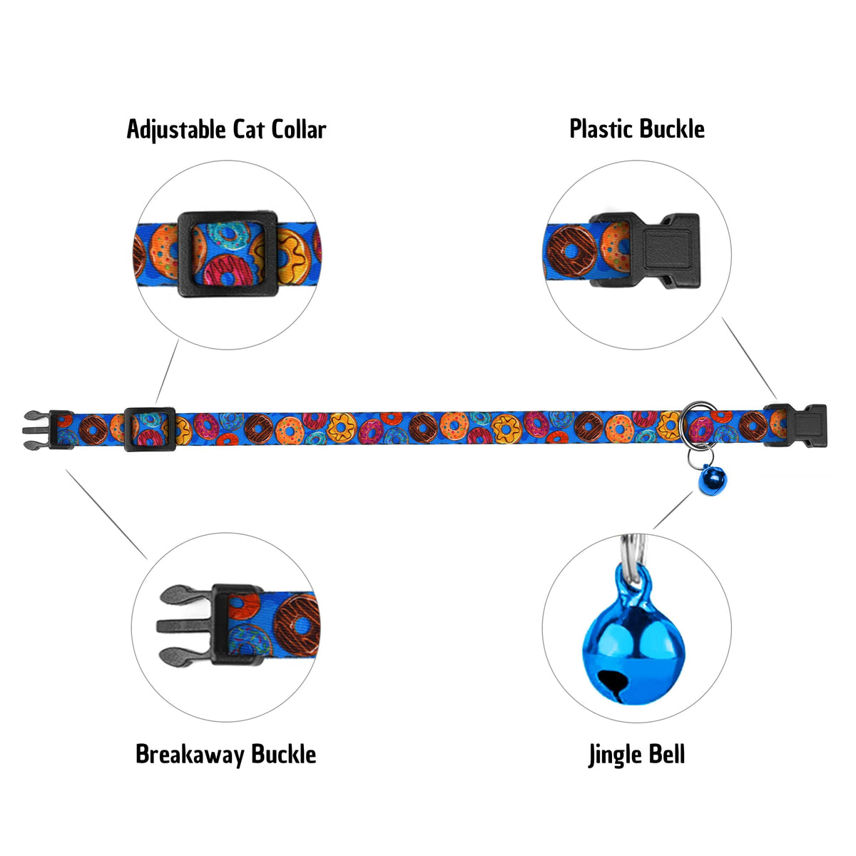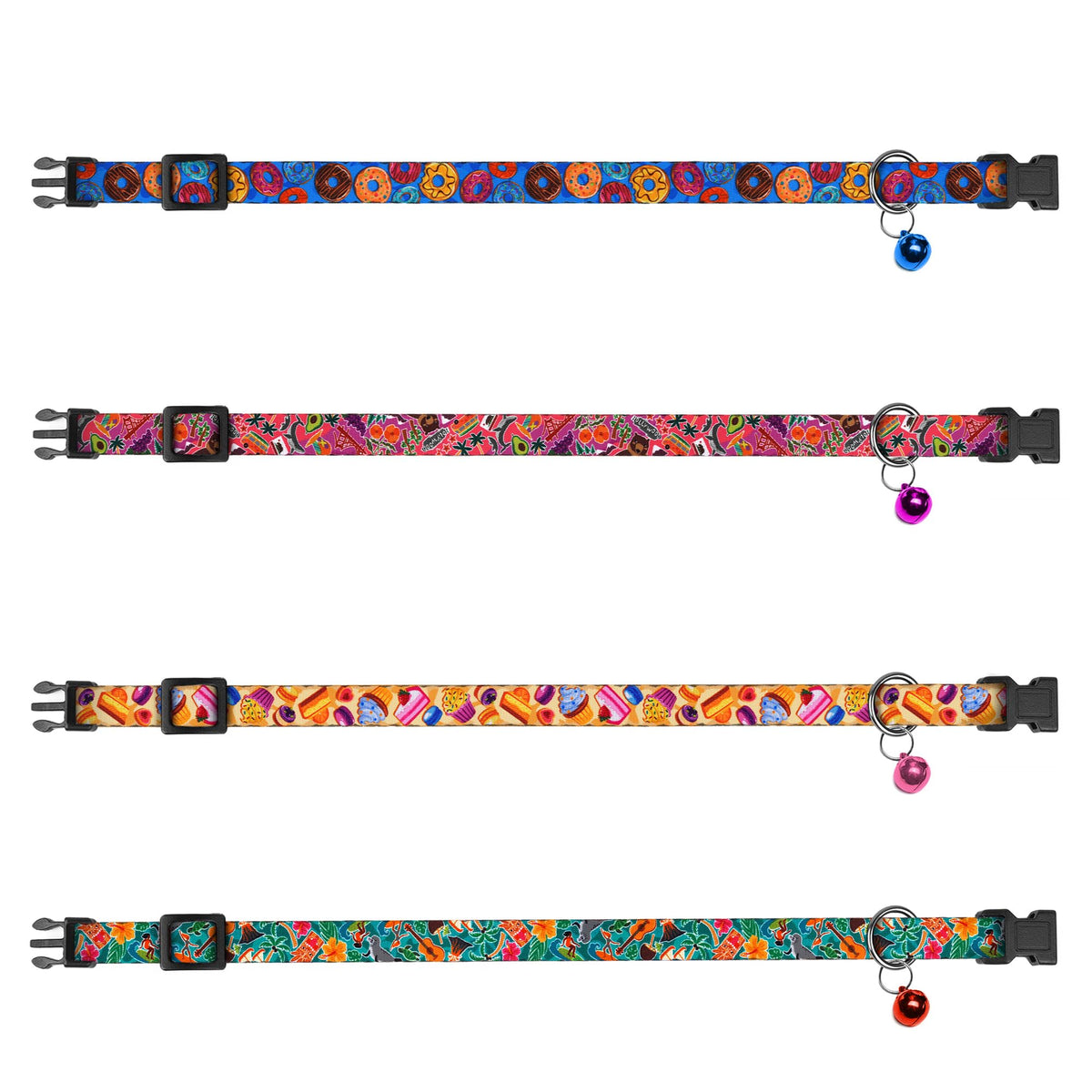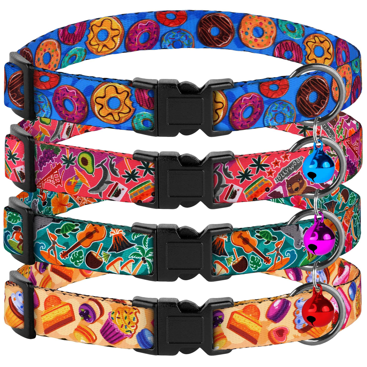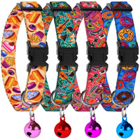 4Pcs Breakaway Cat Collars With Bell, Cute Kitty Adjustable Safe Kitten Collars, 4-Pack, Nylon Pet Collars Cookies Donut Sweet T