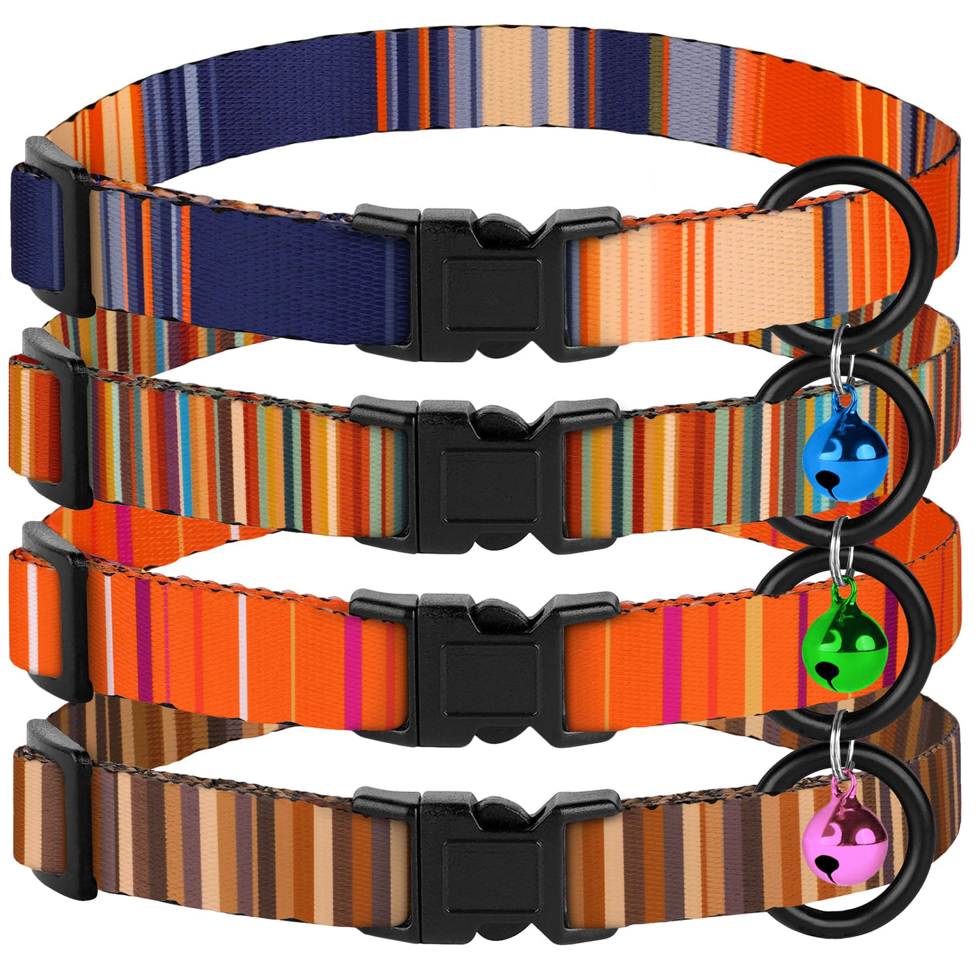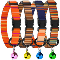 Striped Breakaway Cat Collar 4-Pack, A Perfect Blend Of Style And Safety For Your Feline Friends. This Set Features A Delightful Striped Pattern That Adds A Touch Of Charm To Your Cat'S Appearance. Each Collar Comes Equipped With A Bell, Providing A Playful Element While Alerting You To Your Cat'S Whereabouts. The Convenience Of A 4-Piece Set Ensures You Have Multiple Options To Match Your Cat'S Mood Or Your Preferred Aesthetic. The Collars Are Fully Adjustable, Accommodating Neck Sizes Ranging From 7 Inches To 11 Inches, Making Them Suitable For Both Kittens And Adult Cats. This Adjustable Feature Ensures A Comfortable And Secure Fit For Your Furry Companions. Safety Is Our Top Priority, And The Breakaway Design Ensures That Your Cat Can Easily Free Itself If The Collar Becomes Snagged. This Feature Is Particularly Crucial For Your Cat'S Well-Being During Outdoor Adventures. The Collars Are Available In Both Girl And Boy Designs, Catering To All Preferences. Invest In These Comfortable, Adjustable, And Safety-Focused Breakaway Cat Collars To Give Your Feline Companions The Stylish And Secure Accessory They Deserve.