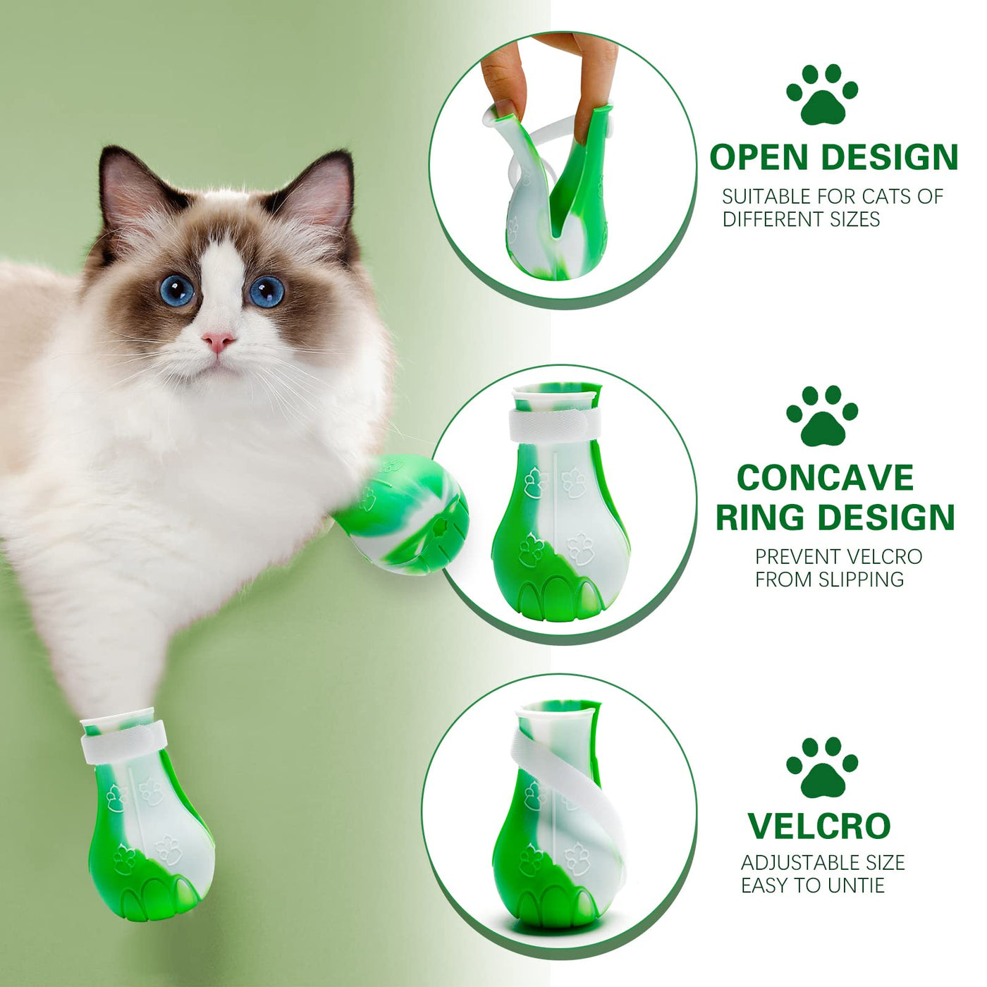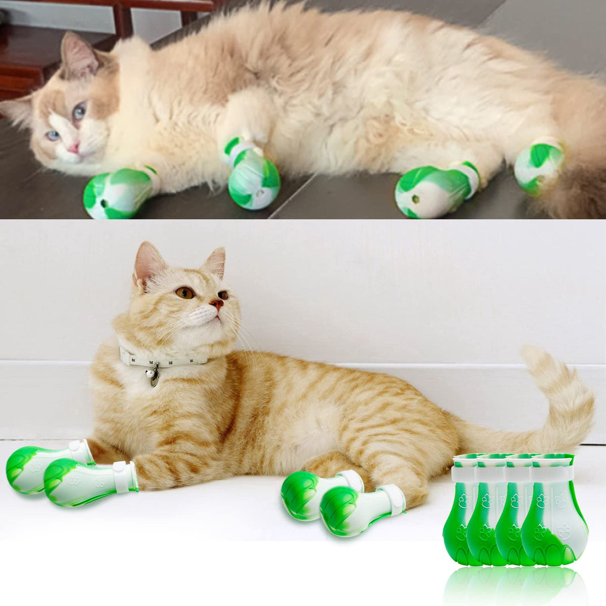 4Pcs Cat Boots For Cats Only Paw Covers Protectors New-Update Claws Shoes Paws Wound Boot Silicon Anti Scratch Cat Mittens For Bathing, Nail Clipping, Ears Cleaning, Treatment