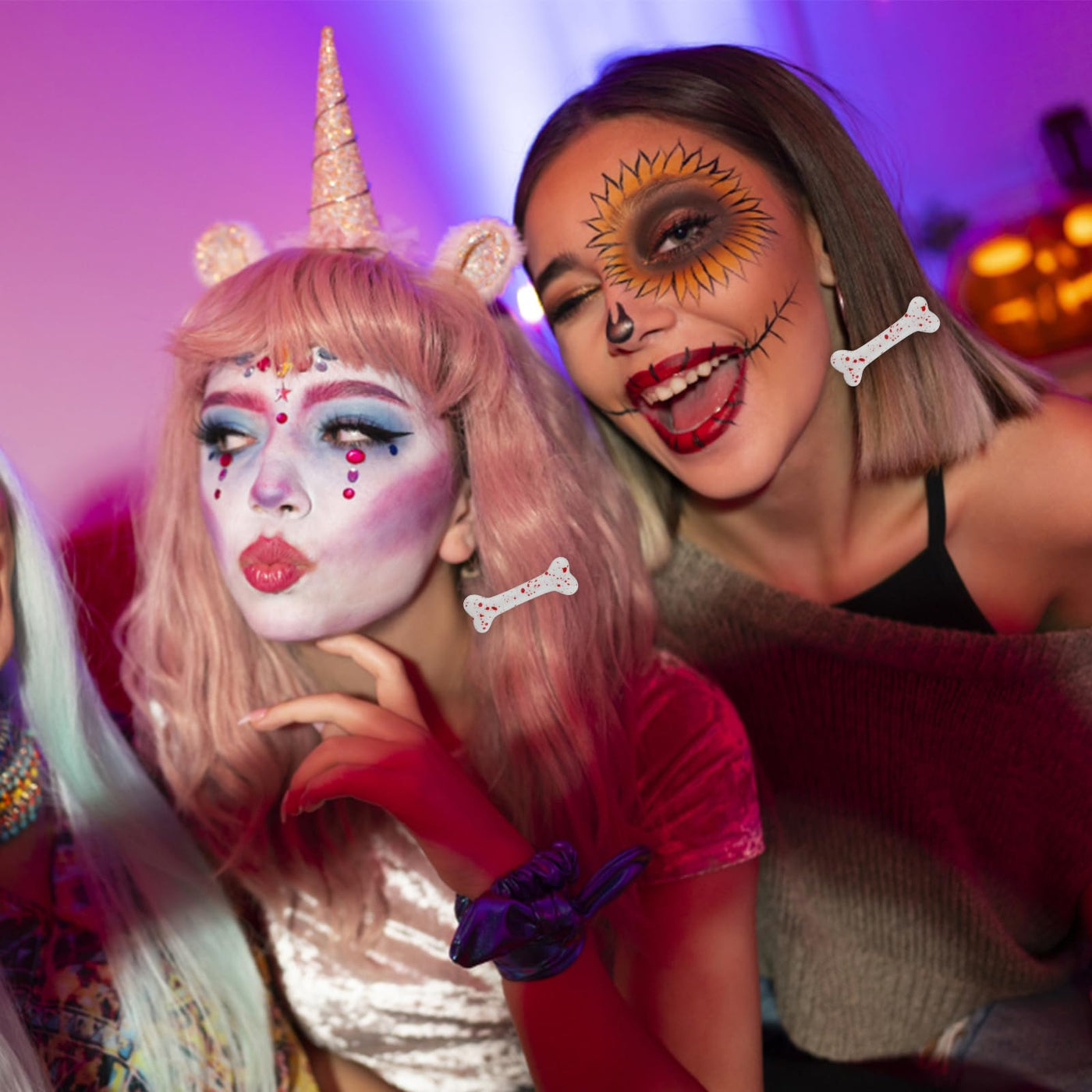 4Pcs Halloween Bone Hair Clips, Bone Barrettes For Women White Dog Bone Alligator Hair Pins For Christmas Halloween Cosplay Party (Red White)