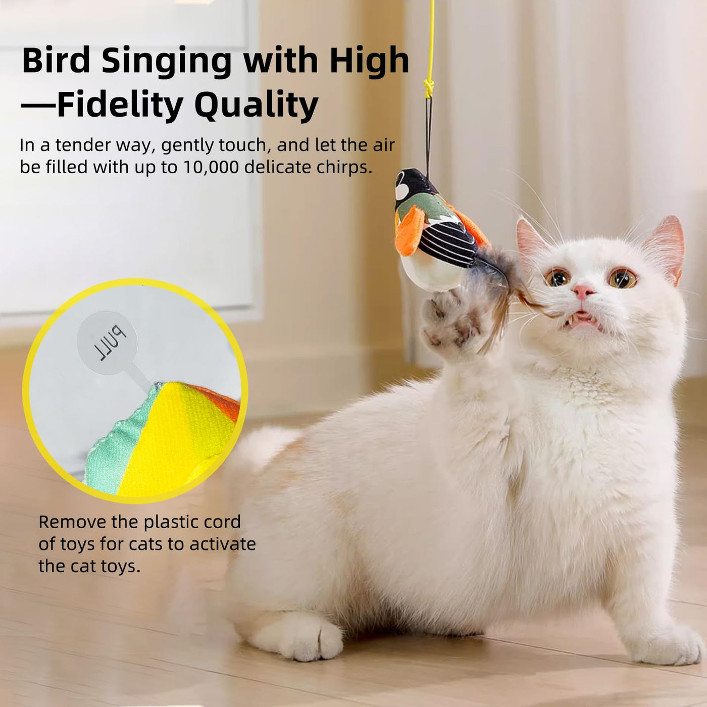 4Pcs Interactive Hanging Bird Cat Toys Set - With Catnip, Realistic Chirping, Lifelike Birdie Tweets, Durable & Safe, Indoor Kit