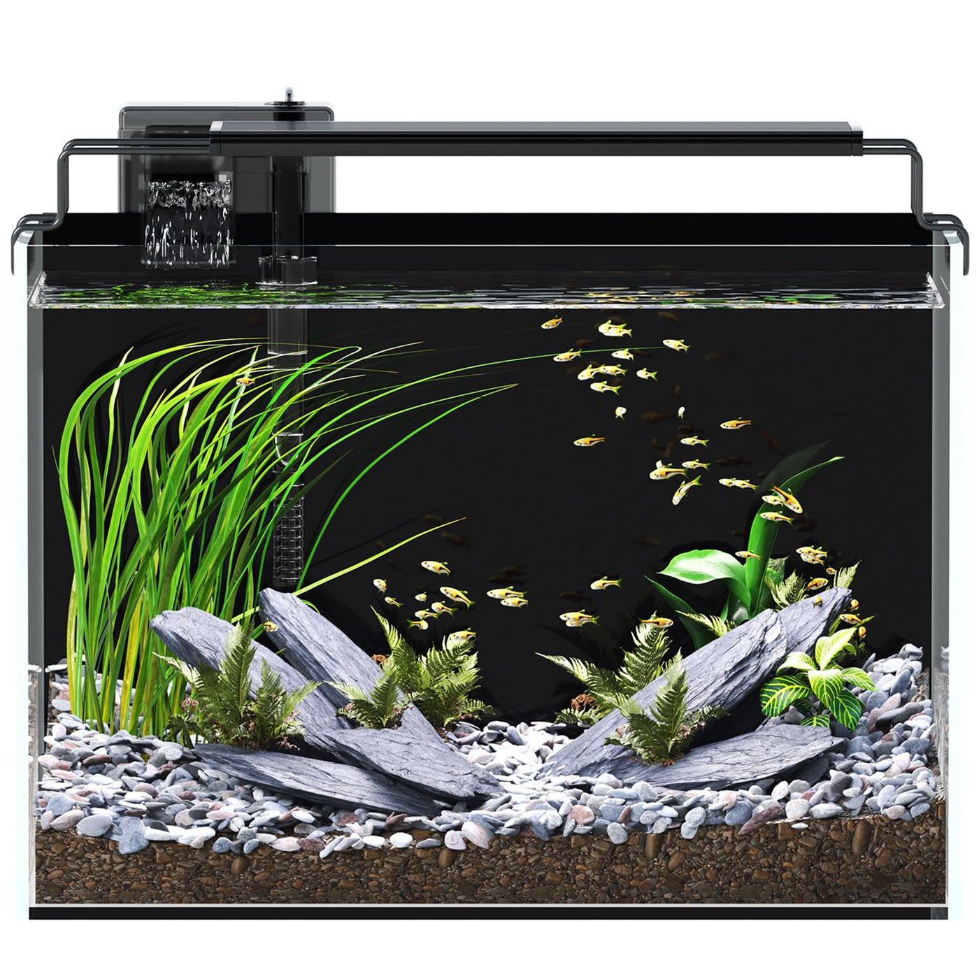 5 Gallon Fish Tank Aquarium Kit with Filter, LED Light with Timer, Siphon Vacuum Cleaner, Lid, Self-Cleaning Glass Rimless Betta