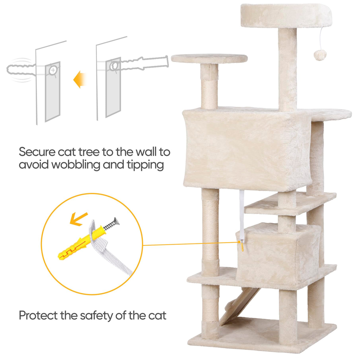 Q: Does the cat tree come with any safety features?A: Yes, the cat tree includes anti-tipper fittings that allow you to secure it to the wall, providing additional safety and stability for your cats during play.