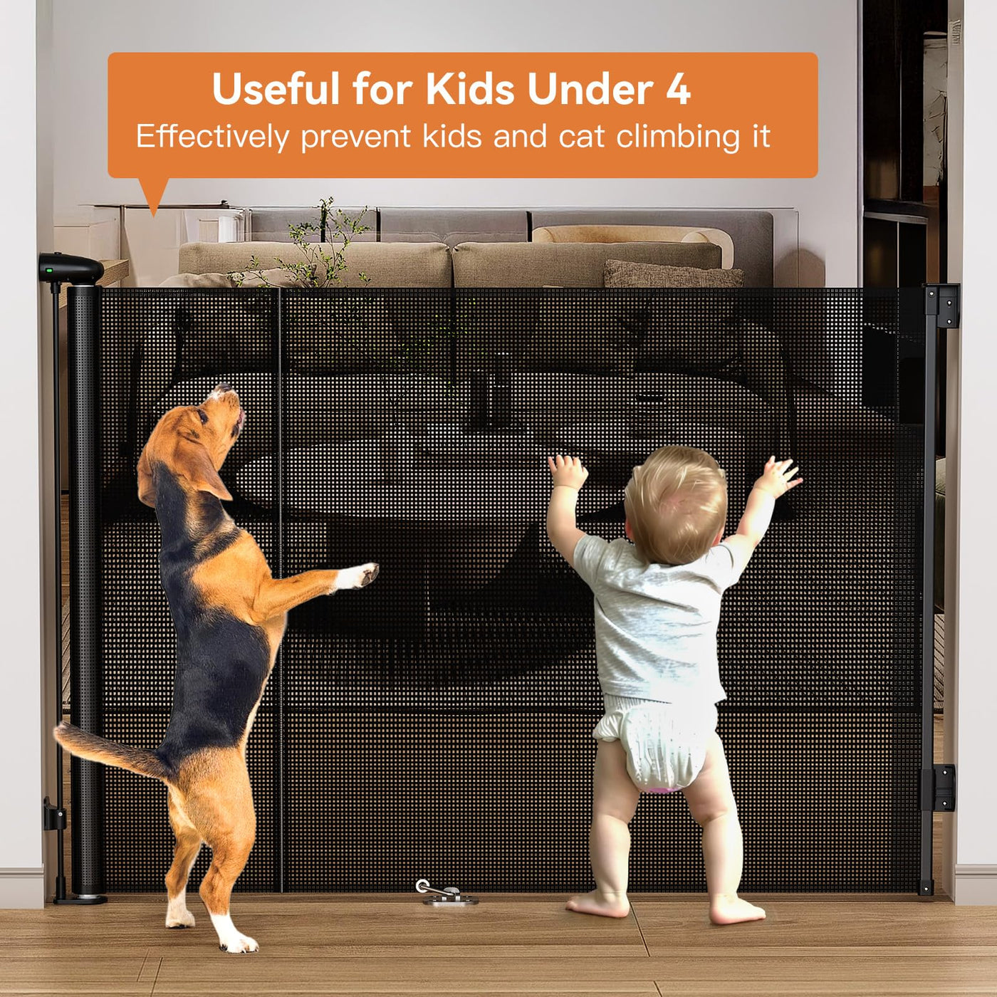 Retractable baby gate indoor outdoor pet gates dog gates reinforced extra wide mesh gates 42 inches tall baby gates for stairs hallway kitchen living room
