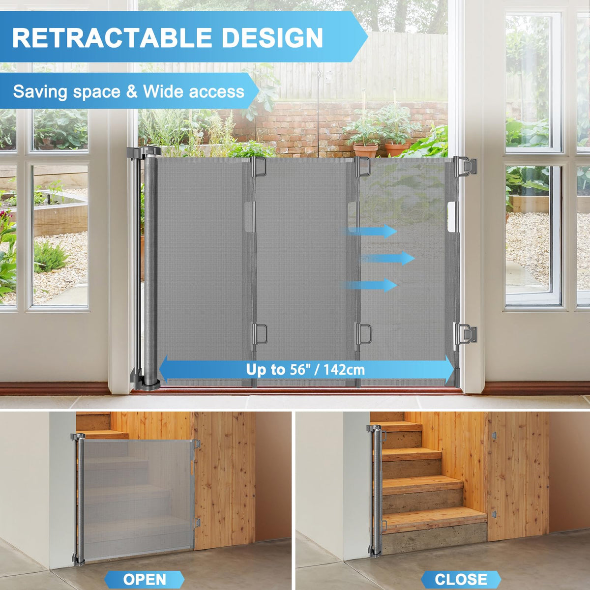 56 Inch Retractable Baby Gate for Stairs Retractable Dog Gates for Doorways Outdoor Baby Gates for Decks Indoor Dog Gates for Th