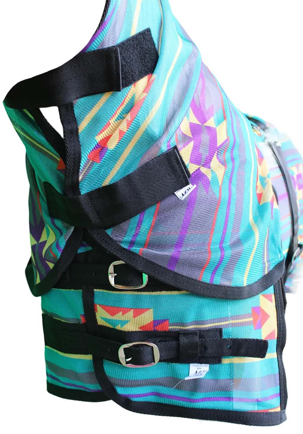 ? HORSE FOAL FLYSHEET: Protecting your horse with this eye-catching flysheet / Scrim sheet from Challenger. Aztec Design in Gorgeous colors, its made from durable poly/nylon mesh that promotes airflow to keep your horse cool and comfortable. The breathable material also acts as a barrier, making it both functional and stylish.