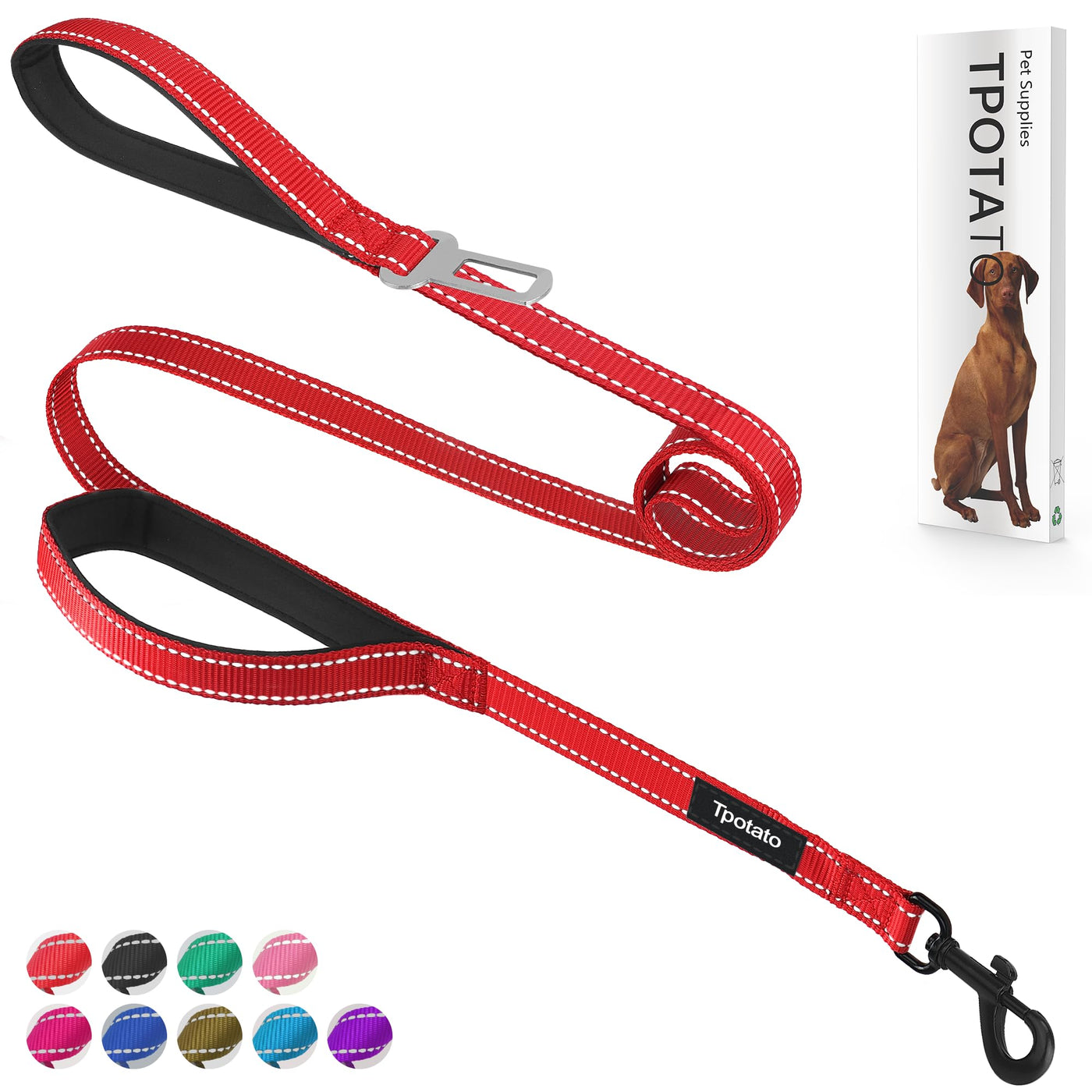 Reflective 6Ft Long Black Handle Dog Leash Is Perfect For Your Small,Medium,Large Breed Dog Or Puppy 6 Feet Dog Leash Has Many Advantages 1,Comfortable Padded Handle The Handle Of Heavy Duty Dog Leashes Have Soft Neoprene Padded On The Inside,Which Is Breathable,Lightweight,Quick Drying,Easy To Grip. 2,Dual Handle Use The Standard 6 Ft Dog Leash Handle For Casual Walking And Relaxing Belt Walking.The 1.5 Ft Dog Leash With Traffic Handle Can Provide Additional,Faster And Safer Control In Emergency Situations. 3,High Reflectivity The Dog Leash With Two Handles Has Been Upgraded Four Highly Reflective Threads On Both Sides,Ensuring High Visibility At Night For Safety. 4,Seat Belt Buckle The Pet Leash Has A Safety Buckle That Can Be Used To Hang Fecal Bags,And Occasionally Can Also Be Used As A Pet Safety Belt. 5,Multiple Colors Available The Ideal Length Of The Strong Dog Leash Is 6Ft,With A Width Of 1 Inch.The Cute Dog Leash Comes In 9 Different Colors:Black,Red,Pink,Purple,Deep Blue,Sky Blue,Light Brown,Cherry Red And Turquoise,You Can Choose The Right Color For Your Pet. 6,Nylon Material Our Double Handle Dog Leash Is Made Of High-Quality Nylon Webbing To Improve Durability And Wear Resistance.Very Suitable For Large, Medium, And Small Breed Dogs.For Extra Strength,The Durable Dog Collar Is Double Stitched At All Relay Points. 7,Anti Entanglement The Training Leashes For Dogs Have A 360 Degrees Rotating Hook,Effectively Avoiding Belt Entanglement. 8,Great Gift On Thanksgiving, Christmas,Mother'S Day,Halloween And Other Holidays,A Lightweight Dog Leash Can Be The Best Gift For Your Cute Dog. Are You Still Hesitating? Choose This Dog Leash For Your Dog And Make It The Brightest Star!We Have 5 Years Of Free Return Service,Rest Assured To Buy!