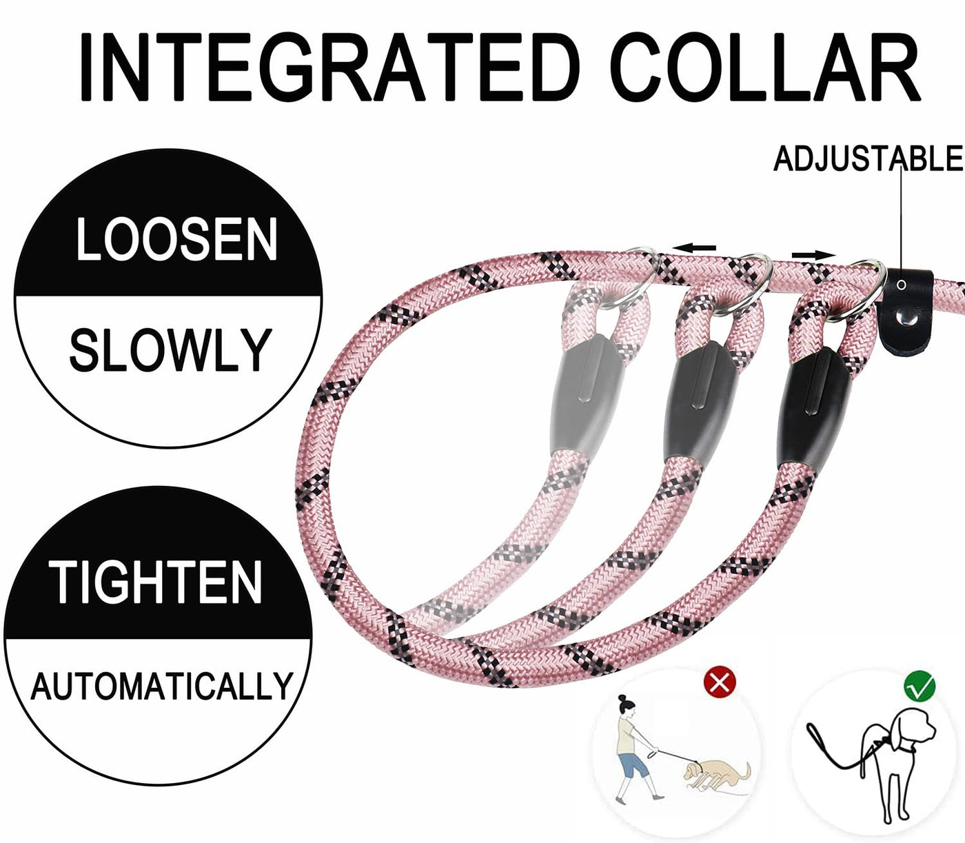 Booeudi 6 Foot Durable Dog Rope Leashdesigned For Comfort & Conveniencethis Slip Leash Acts As A Leash And A Collar In One. Simply Slip The Loop Over Your Dogs Neck And Use The Handle End As A Leash. Leash And Collar In One Combination That Is Great For Walking, Running And Trainning. Give Enough Freedom To Your Dog And Everything Absolutely Under Your Control.Padded Foam Handlepadded Foam Handle Provide A Very Comfortable Grip.High Quality Reflective Nylon Climbing Ropevery Durable, Increasing The Safety Of Night Travel Lead And Collar 2 In 1This Slip Lead Dog Leash Made With High-Quality Nylon Rope And Leather Clips And Slider, Hand Feel Soft And Comfortable, Lightweight Yet Durable. No Collar Or Harness Needed.Slip Lead Rope Leashthis Rope-Style Slip Leash Easy Adjustable To Fit Any Neck Size, And Help Dogs Learn How To Walk Properly. Simple And Easy Of Use. Great For Small Medium Dogs Walking, Training.Durable Sewingprofessional Sewing Machine Double Stitching,The Seam Will Not Break Even If The Rope Breaks.Enhanced Hard Plastic Coverthis New Designed Cover Will Not Fall Off Easily, No Smell, No Glue And Much More Durable & Bite-Resistant.Great Large Dog Leash For Outdoor Sports Such As Hiking, Camping, Training, Hunting, Backyard, Beach, Mountain Climbing, Walking, Running, And So On. Now You Can Take Your Pets With You On All Kinds Of Adventures.Colors: Blacksize: 6Ft In 1/2 Inch Diameter.Note: This Rope Dog Leash Mainly Designed For Medium Or Large Dogs, Please Choose 1/3'' Version For Small Dogs.
