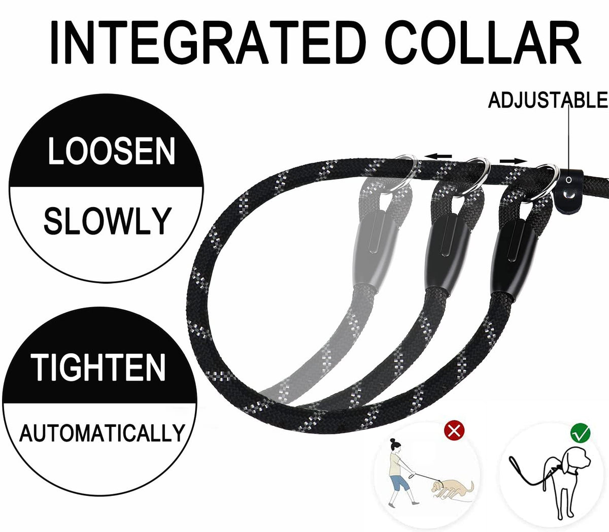 Booeudi 6 Foot Durable Dog Rope Leashdesigned For Comfort & Conveniencethis Slip Leash Acts As A Leash And A Collar In One. Simply Slip The Loop Over Your Dogs Neck And Use The Handle End As A Leash. Leash And Collar In One Combination That Is Great For Walking, Running And Trainning. Give Enough Freedom To Your Dog And Everything Absolutely Under Your Control.Padded Foam Handlepadded Foam Handle Provide A Very Comfortable Grip.High Quality Reflective Nylon Climbing Ropevery Durable, Increasing The Safety Of Night Travel Lead And Collar 2 In 1This Slip Lead Dog Leash Made With High-Quality Nylon Rope And Leather Clips And Slider, Hand Feel Soft And Comfortable, Lightweight Yet Durable. No Collar Or Harness Needed.Slip Lead Rope Leashthis Rope-Style Slip Leash Easy Adjustable To Fit Any Neck Size, And Help Dogs Learn How To Walk Properly. Simple And Easy Of Use. Great For Small Medium Dogs Walking, Training.Durable Sewingprofessional Sewing Machine Double Stitching,The Seam Will Not Break Even If The Rope Breaks.Enhanced Hard Plastic Coverthis New Designed Cover Will Not Fall Off Easily, No Smell, No Glue And Much More Durable & Bite-Resistant.Great Large Dog Leash For Outdoor Sports Such As Hiking, Camping, Training, Hunting, Backyard, Beach, Mountain Climbing, Walking, Running, And So On. Now You Can Take Your Pets With You On All Kinds Of Adventures.Colors: Blacksize: 6Ft In 1/3 Inch Diameter.