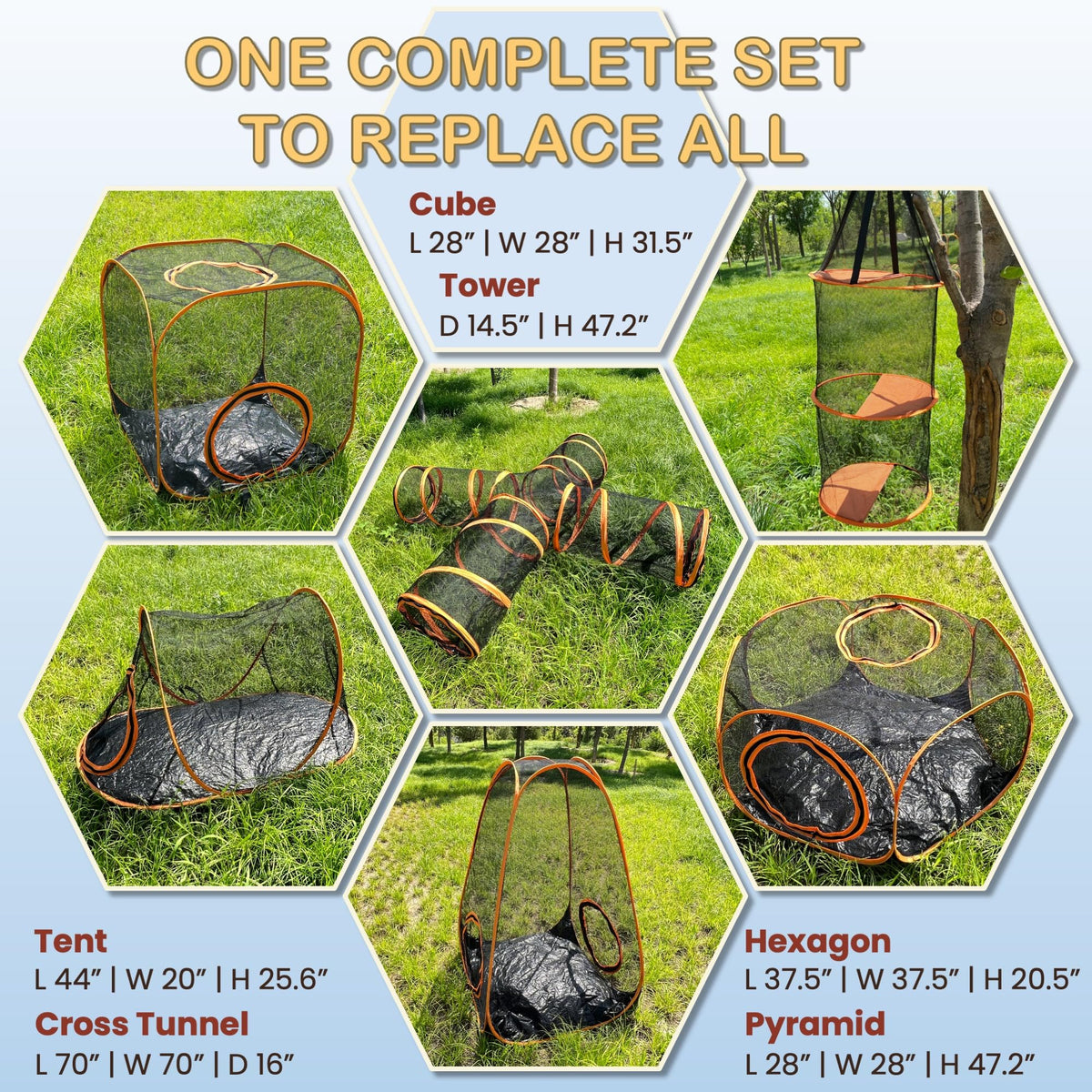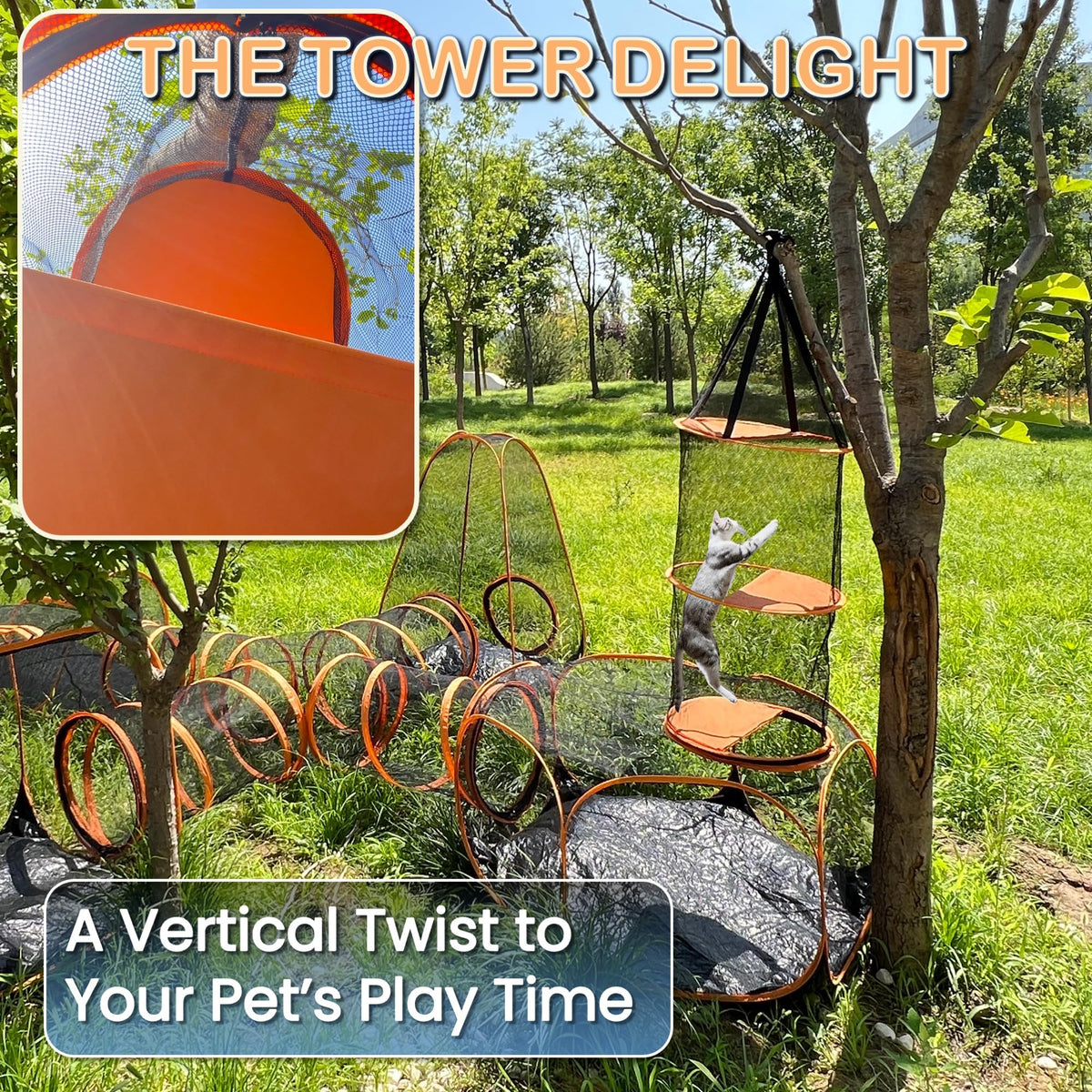 6-In-1 Large Outdoor Indoor Cat Tent Tunnel & Tower Compound, Upgraded Pop Up Pet Playhouse Set, Yard Traveling Camping, Portable Playpen Enclosure For Cat Kitty Dog Puppy Rabbit Small Animals