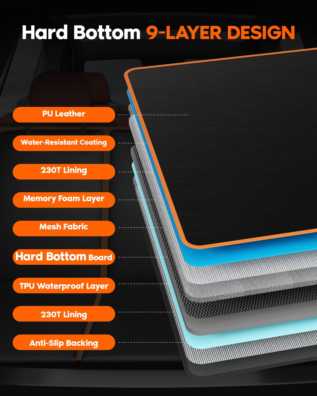 6-In-1 Leather Dog Backseat Extender, Hard Bottom 40/60 Split Waterproof Car Back/Front Seat Cover, Rear Hammock Carseat Protect